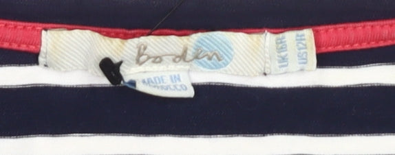Upgrade your wardrobe with the Boden Women's Multi Striped V-Neck Wrap Dress, a versatile and stylish option perfect for various occasions. Crafted with a soft, jersey fabric, this dress combines comfort with a modern design. The multicoloured striped pattern adds vibrancy and charm, making it a standout piece in any collection. With a flattering wrap style and a V-neckline, it accentuates your silhouette beautifully. The short sleeves offer ease and breathability, ideal for seasonal transitions. Made of 96% cotton and 4% elastane, it provides a comfortable stretch, fitting your form perfectly while keeping you at ease all day. Suitable for women who appreciate a blend of simplicity and flair, this timeless dress is in excellent condition with only minor wear visible, ensuring you value for your money. Don't miss out on adding this fashionable and functional piece to your closet.