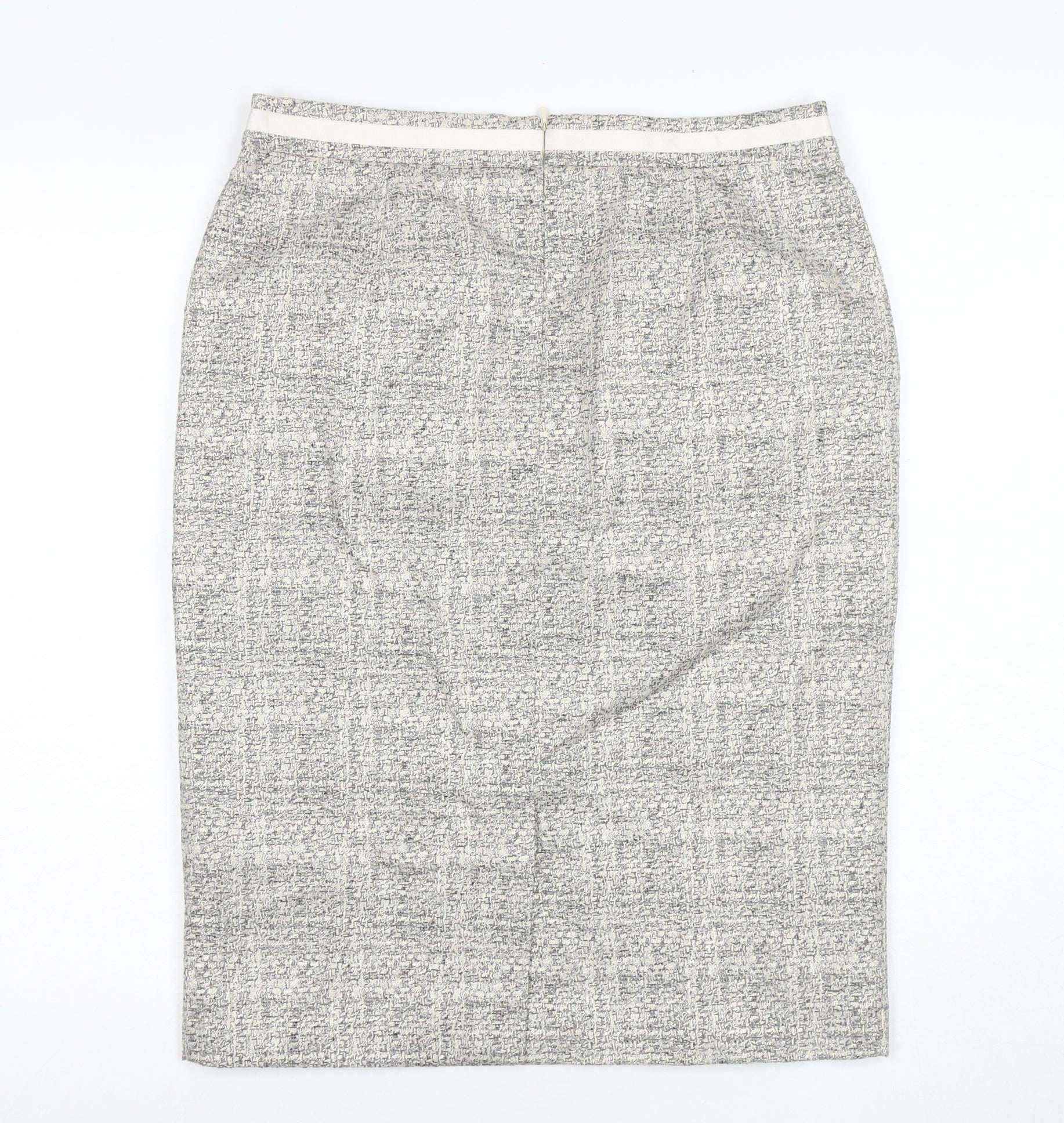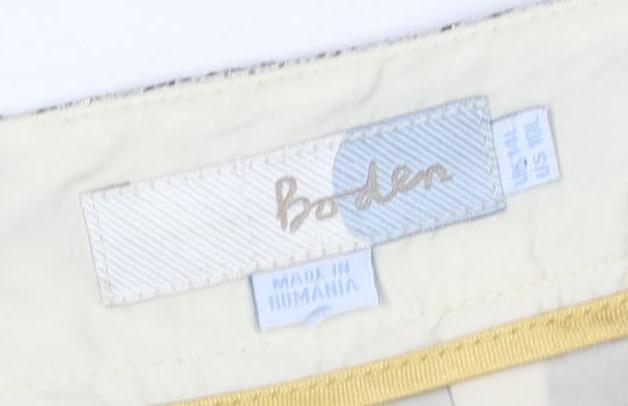 Enhance your wardrobe with this classic Boden Women's Multicoloured Check Pencil Skirt in size 10. Exquisitely tailored for a sleek and sophisticated look, this skirt is an ideal choice for both professional environments and casual outings. Crafted from a blend of 58% Cotton and 30% Polyester with 4% other fibers, it promises both comfort and durability, allowing you effortless wear throughout the day. The knee-length pencil style amply flatters the silhouette while keeping you trendy and chic. Featuring a secure zip closure, this skirt offers ease of wear, letting you slip into style with minimal fuss. Its elegant check pattern subtly adds a touch of texture and intrigue to your outfit, making it versatile for pairing with different tops and blouses. Despite its minimal signs of usage, the condition is excellent, ensuring you get a premium garment at a terrific value. A must-have for a stylish yet practical fashionista, this Boden skirt is poised to become a staple in your wardrobe. Elevate your look today and enjoy the timeless appeal of this piece wherever you go.