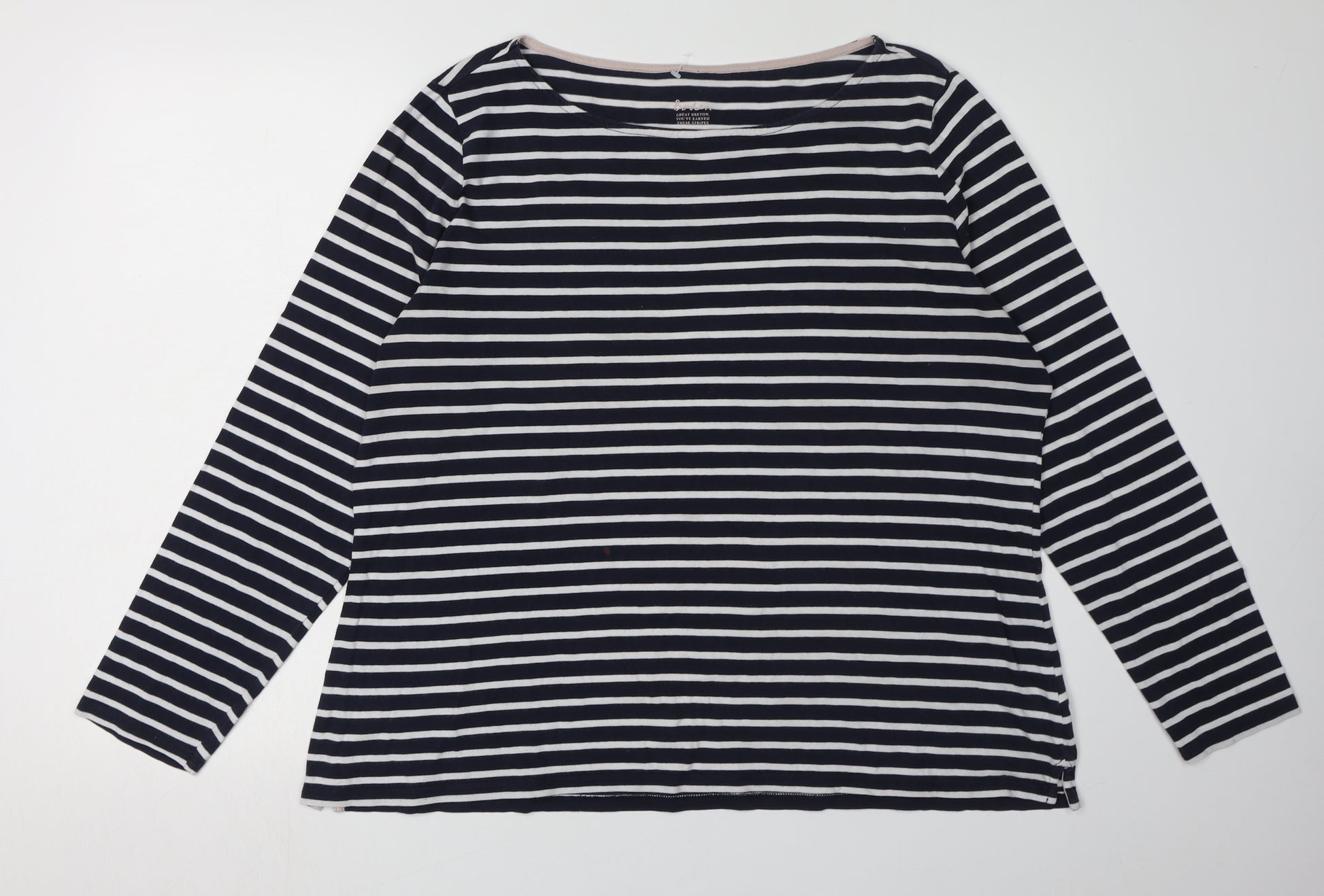 Elevate your casual wardrobe with this Boden Women's Multicoloured Striped T-Shirt, perfect for adding a touch of classic charm to your everyday ensemble. Crafted from 100% cotton for a soft and breathable feel, this t-shirt ensures comfort through spring, summer, and autumn. The distinctive boat neck and long sleeves make it an ideal choice for a variety of occasions, whether you're heading to a casual outing or enjoying a relaxed day at home.The striped pattern adds a timeless touch, while the regular fit ensures an easy, laid-back style. Designed with Boden's signature quality, this t-shirt is both durable and stylish, making it a versatile addition to any wardrobe. The pullover closure allows for easy wear, and its machine washable material promises hassle-free care.Despite displaying a minor stain on the front, this t-shirt remains in good condition, offering the perfect opportunity to enjoy Boden's renowned design at an affordable price. Whether paired with jeans for a weekend look or layered under a blazer for a polished finish, this striped t-shirt is a must-have for any fashion-forward individual seeking comfort and style.