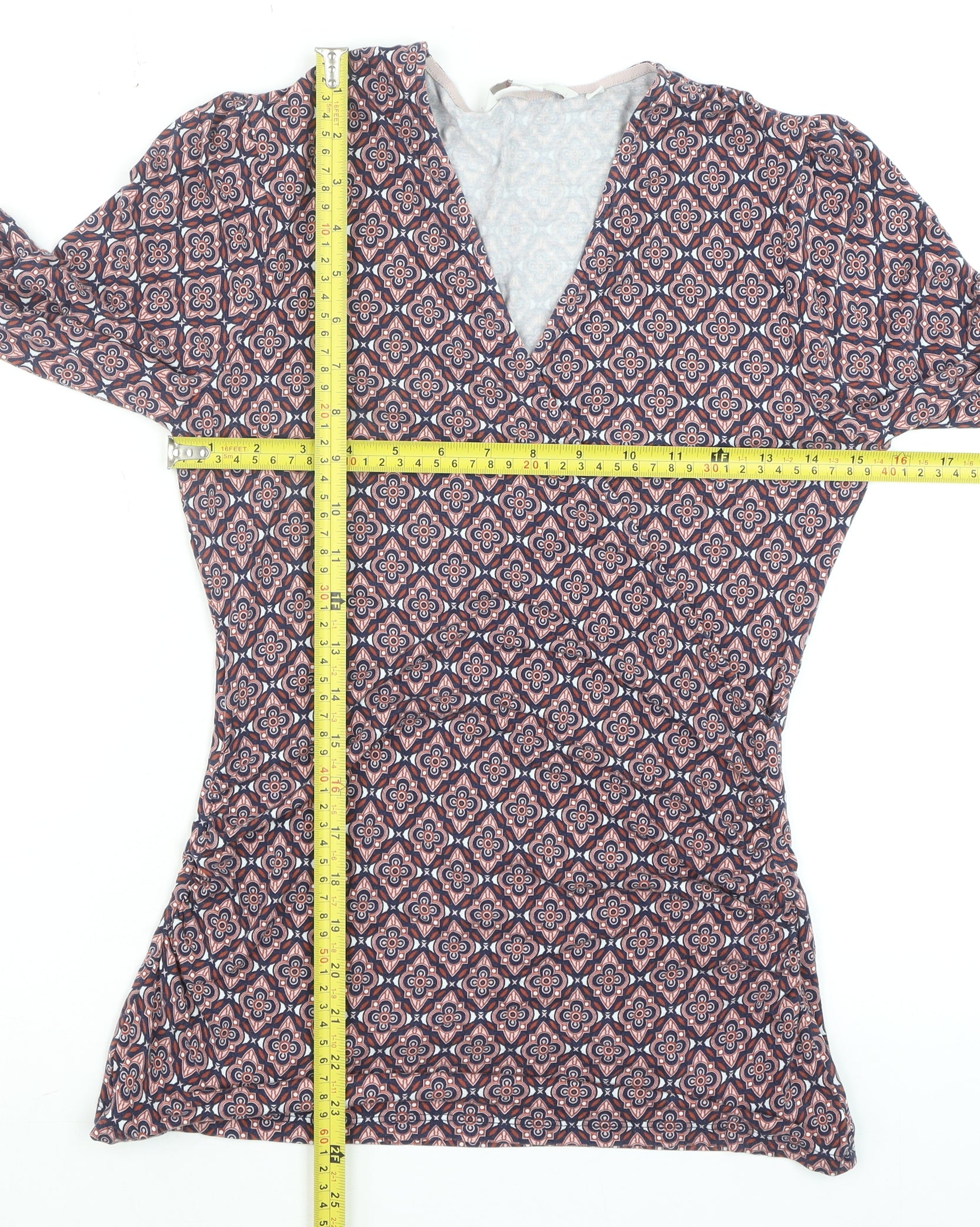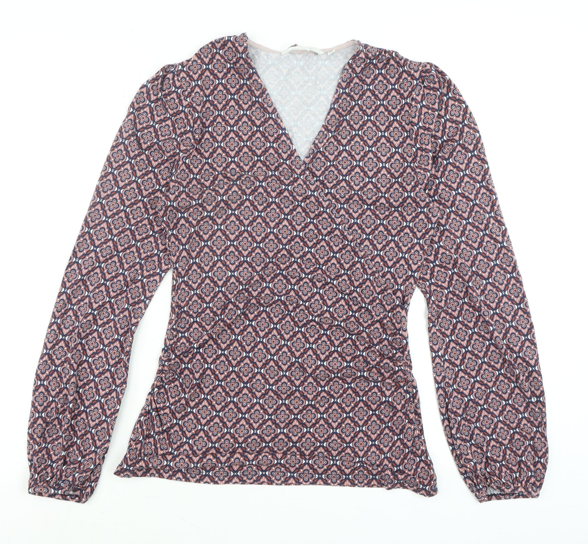 Women's Multicoloured Wrap V-Neck Long Sleeve Blouse Size 10