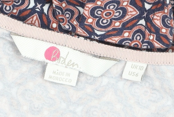 Add a touch of effortless style to your wardrobe with this beautiful Boden women’s wrap blouse in a UK size 10. With its flattering V-neckline and timeless geometric print in warm tones of navy, rust, and cream, this blouse is perfect for both smart-casual and everyday wear. The soft, lightweight jersey fabric blend of viscose and elastane provides a comfortable, breathable, and slightly stretchy fit that moves easily with you throughout the day. Designed with long fitted sleeves that gather gently at the cuffs, it creates a feminine silhouette that’s both flattering and versatile. Ideal for wearing under a blazer for the office or paired with jeans for a relaxed weekend look, this piece works beautifully across seasons – comfortable for spring days or layering in cooler autumn weather. The pullover style keeps it easy to wear, while the wrap-inspired front delivers an elegant, gently draped look around the waist. Boden’s attention to quality construction and refined design details make this blouse a reliable choice for women who appreciate stylish simplicity and comfort in one. The top is presented in excellent pre-owned condition, showing only light signs of gentle wear consistent with minimal use. Machine washable for easy care, it’s a practical and stylish addition to any capsule wardrobe. Whether dressed up or down, this classic Boden top offers a timeless charm that captures effortless British chic.