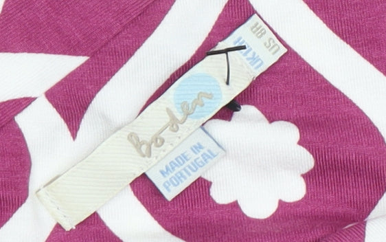 Introducing a vibrant Boden women's dress, perfect for adding a pop of colour to your wardrobe. Designed for elegance and comfort, this dress features a striking pink geometric pattern that will surely turn heads. Crafted from a soft jersey fabric blend of 95% viscose and 5% elastane, it ensures a comfortable fit while maintaining its shape all day long. Although this dress does not come with original sales tags, its excellent condition speaks volumes of its quality. Whether you're heading for a casual outing, a day at the office, or a special occasion, this versatile piece will adapt to your needs seamlessly. The lightweight material is suitable for multiple seasons, keeping you stylish and comfortable throughout the year. Pair this dress with your favourite accessories to create a look that is uniquely yours. Don't miss out on this wardrobe staple offered at a competitive price.