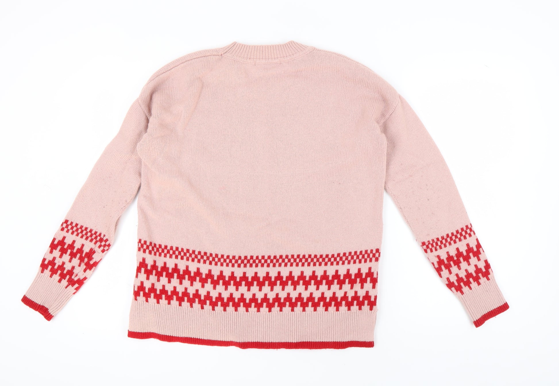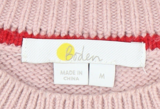 Add a touch of elegance and warmth to your winter wardrobe with this delightful Boden Women's Pink Geometric Knit Pullover Jumper. Featuring a beautifully crafted geometric pattern in a soft pink hue, this jumper effortlessly combines style and comfort. Made from pure wool, it's designed to keep you cozy during the colder months while ensuring a luxurious, soft feel against your skin. The crew neckline and regular fit offer a classic silhouette, making it an easy-to-style piece for various occasions. Whether you're dressing it up for a casual workday or pairing it with jeans for a relaxed weekend look, this jumper ensures versatility and fashion-forward appeal. Its tight-knit fabric type guarantees durability, providing long-lasting wear throughout the season. Embrace the charm and warmth of this Boden jumper, a perfect addition to any stylish ensemble.