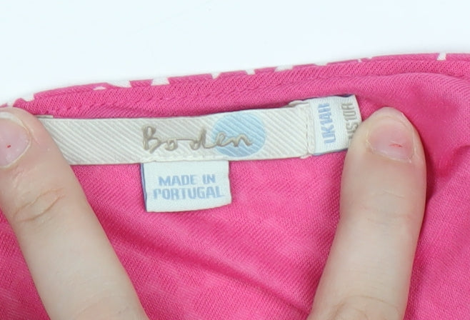 Step into spring with this chic Boden dress, designed to make a statement with its vibrant pink geometric pattern. Crafted from a blend of soft viscose and elastane, this A-line dress offers both comfort and style, perfect for casual outings or relaxed gatherings. The strappy sleeve and V-neckline add a touch of elegance, making it a versatile addition to any wardrobe. The elasticated waist ensures a flattering fit, enhancing your silhouette effortlessly. Pair it with sandals for a day out in the sun, or layer with a denim jacket for those cooler evenings. Its lightweight fabric makes it an ideal choice for spring and summer wear, offering breathability and ease of movement. Embrace the bohemian theme with this delightful wardrobe essential.