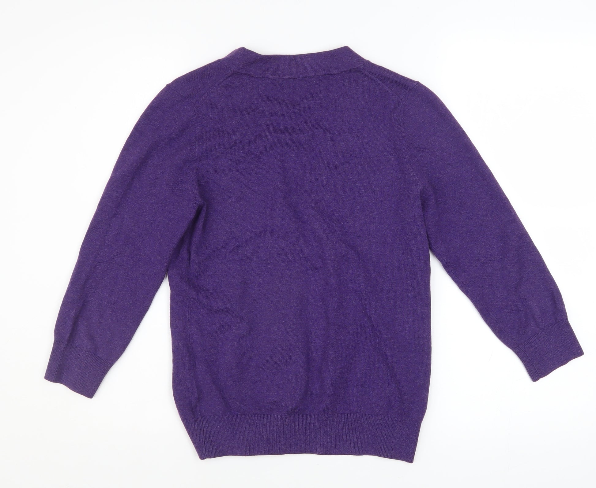 Add a touch of effortless style and comfort to your wardrobe with this beautiful women’s cardigan from Boden. Crafted in a rich shade of purple, this V-neck cardigan combines classic simplicity with quality craftsmanship. The piece has a flattering regular fit that skims the figure without clinging, making it a staple layering item for every season. Designed with bold statement buttons down the front, it provides both practicality and a refined finish for an elevated casual look. Made from a soft and breathable knit, the cardigan features an easy-care fabric blend of 80% cotton, 17% nylon, and 3% elastane, ensuring both comfort and slight stretch for flexible movement. This lightweight ribbed design keeps you warm during the cooler months while also being light enough for layering in spring and autumn. It’s finished with long sleeves and rib-knit cuffs and hem to hold its shape beautifully.The cardigan’s plain-knit design provides a timeless appearance that pairs effortlessly with jeans, skirts, or tailored trousers, making it suitable for both casual and smart settings. Whether you wear it buttoned up for a chic, polished style or open over a blouse for a more relaxed fit, it offers versatile wear all year round. Although this particular piece shows a small front mark, it remains in very good pre-owned condition and has plenty of life left. Boden’s quality ensures durability, softness, and lasting colour. Ideal for layering at work, weekends, or leisurely days out, it’s a must-have wardrobe essential. With its beautifully soft purple hue and comfortable cotton blend, this Boden cardigan brings both luxury and practicality to everyday dressing — a dependable statement of modern style and timeless appeal.