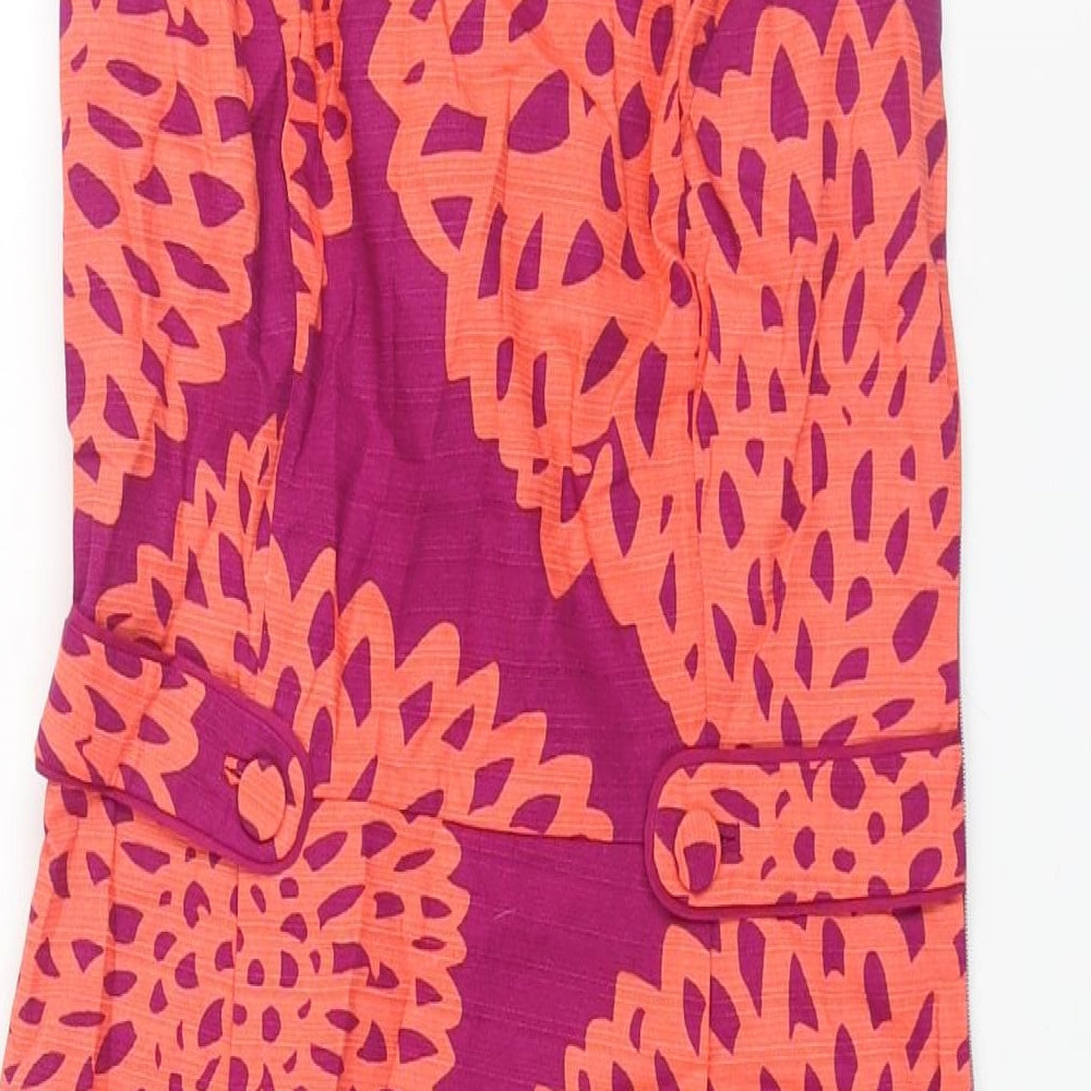 Womens Purple Geometric Cotton Shift Size 6 V-Neck Zip