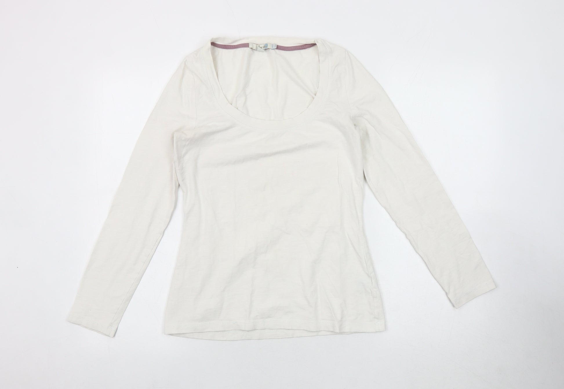 Discover everyday elegance with this charming Boden Women's T-Shirt, perfect for adding a touch of sophistication to your casual collection. Crafted from a soft and stretchy blend of 95% cotton and 5% elastane, this white long sleeve T-shirt offers an excellent fit and incredible comfort, making it an ideal choice for various occasions. The classic scoop neckline adds a subtle touch of style, while the fitted sleeves offer a clean and tailored look. Designed for women who appreciate quality, this T-shirt is versatile enough to suit different style preferences. Regardless of the season, whether layering during cooler months or wearing it solo when temperatures rise, this T-shirt provides unmatched versatility. Excellent condition ensures a great deal on a top that remains stylish and timeless. Imagine pairing this sleek piece with your favourite jeans for a classic look or dressing it up with a skirt and jewellery for a chic casual appearance. Its solid white colour makes it easy to complement with both bold and neutral pieces, offering endless styling options. A pullover closure ensures ease of wear, and the overall design promises longevity in style and comfort. A wonderful addition to anyone's wardrobe, this Boden T-shirt entices with both quality and elegance, offering fashion-forward women a reliable garment that doesn't compromise on comfort or style. Perfect for casual wear, work, or outings with friends, enjoy how beautifully this versatile piece fits into multiple facets of your lifestyle.