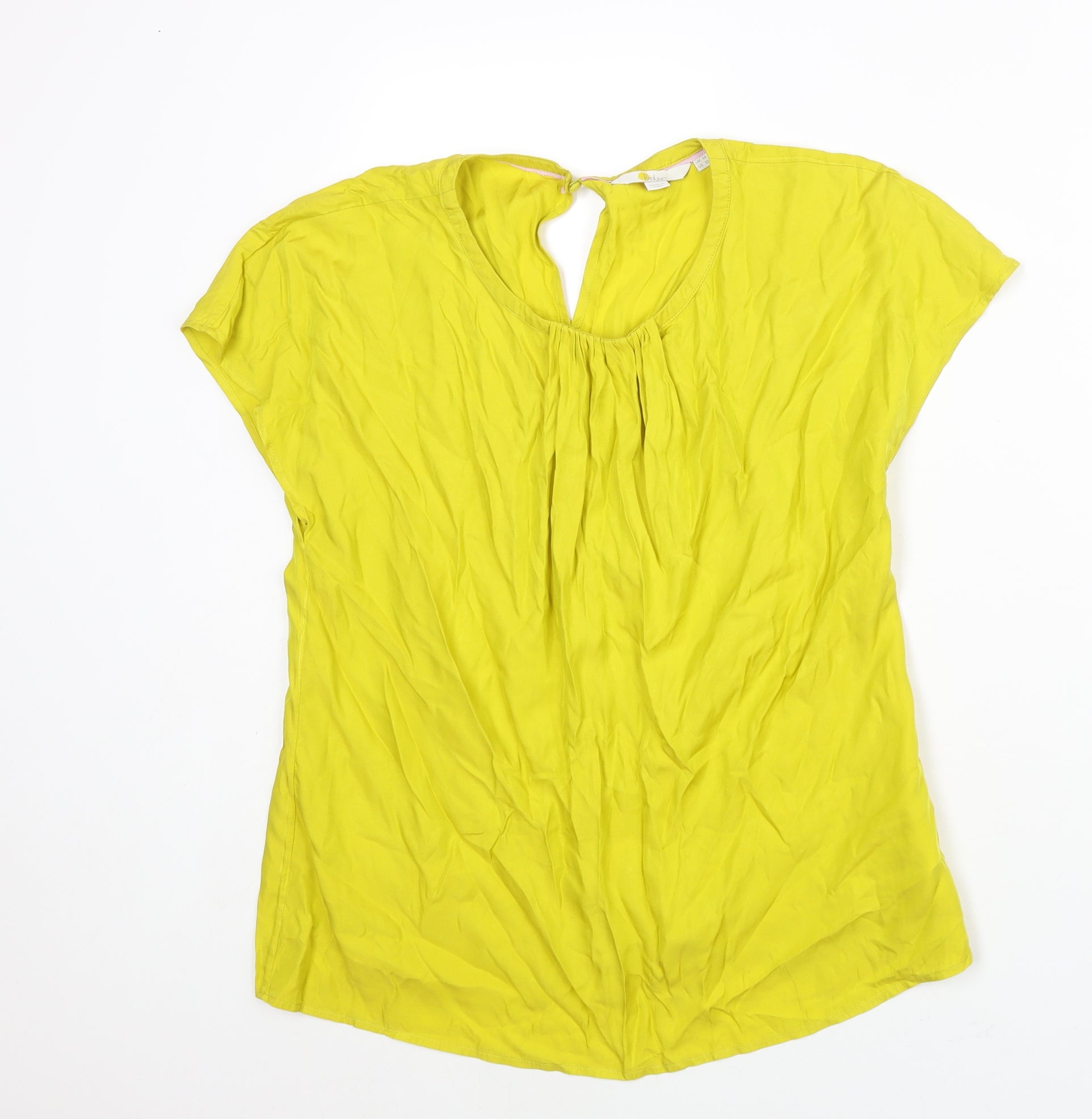 Womens Yellow Viscose Basic Blouse Size 14 Round Neck