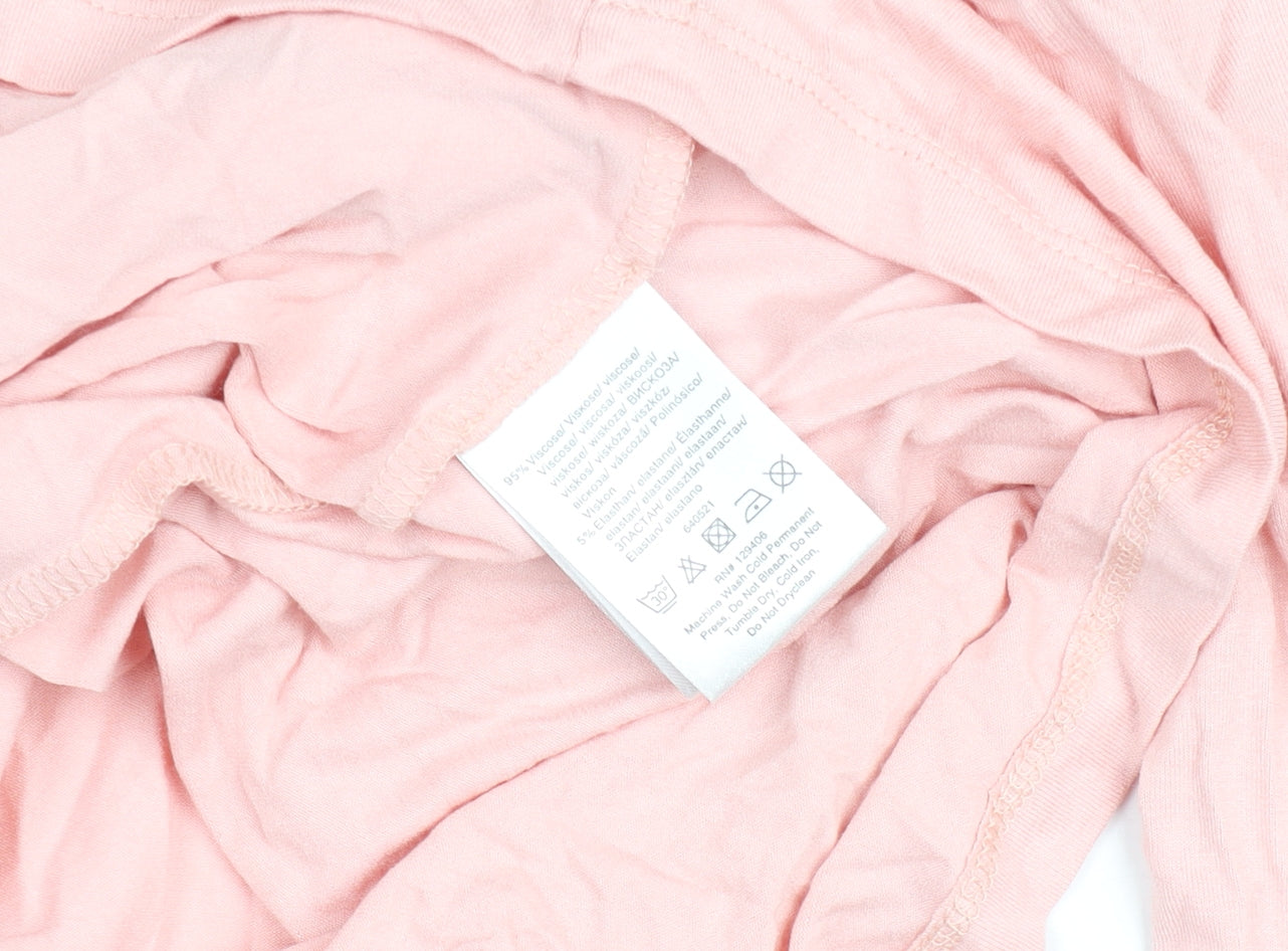 Embrace effortless femininity with this beautiful pink wrap-style blouse from Bodyflirt, perfect for everyday elegance or a relaxed evening out. Designed for women who appreciate comfort and style, this soft jersey top is crafted from a breathable blend of viscose and elastane, offering a wonderfully lightweight and stretchy fit. The viscose provides a smooth, drapey silhouette, while the added elastane ensures flexible comfort that moves with you throughout the day.Featuring a flattering off-the-shoulder neckline, this blouse adds a touch of sophistication and allure. The wrap-style front enhances your natural shape and brings a graceful twist to its simple yet refined design. The 3/4 sleeves give it a balanced, feminine appeal, making it ideal for transitional weather and layering under jackets or cardigans. Its soft pastel pink shade complements a wide range of skin tones and styles effortlessly.Perfect for casual outings, coffee dates, or parties, this versatile piece can be dressed up or down with ease. Pair it with high-waisted jeans for a laid-back vibe or a sleek skirt for a more polished look. Crafted in a solid pattern, it’s easy to accessorise with delicate jewellery or a statement piece if you’re in the mood to shine.Made for modern women who value comfort and classic chic, this Bodyflirt top is machine washable for easy care. Its flattering off-shoulder neckline, combined with soft fabric and stretch design, ensures you’ll look and feel fabulous from day to night. In very good pre-owned condition with only light creasing from storage, it’s ready to bring a touch of romantic charm to your wardrobe. A timeless addition that blends elegance and ease, this blouse will quickly become one of your go-to favourites for spring and summer stylish dressing.