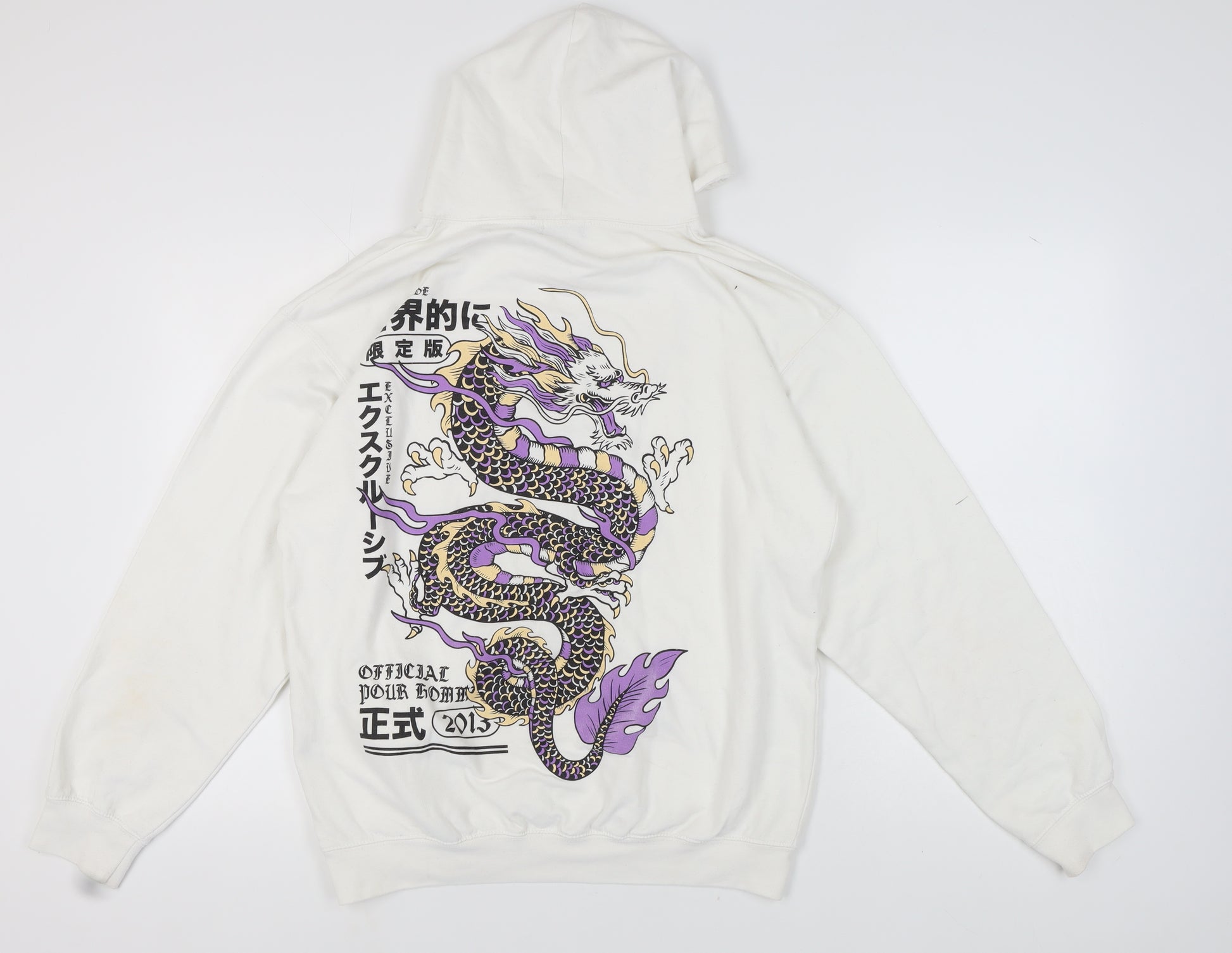 Elevate your casual wardrobe with this distinct bohooMAN Men’s Hoodie in a classic white hue. Crafted with an engaging dragon graphic print, it offers an edgy flair while ensuring you stay comfortably fashionable. Appropriate for various seasons—autumn, spring, and winter—this hoodie is crafted in a pullover style with a practical crew neck design. Made predominantly from 80% cotton and complemented by 20% polyester, this piece promises a soft touch along with durability. The hoodie style features a handy front pocket and hooded design for extra warmth, making it a versatile piece for a laid-back day out or a stylish stay-in outfit. Designed for regular fit in a medium size, it comes with long sleeves that add an extra layer of warmth. Machine washable for easy garment care, it maintains convenience without compromising on style. In excellent condition with slight use—no signs of wear evident apart from the absence of original sales tags—this hoodie could be a fantastic choice for those seeking comfort blended with expressive style. It’s priced at £22.75, presenting a great opportunity for addition to your wardrobe.