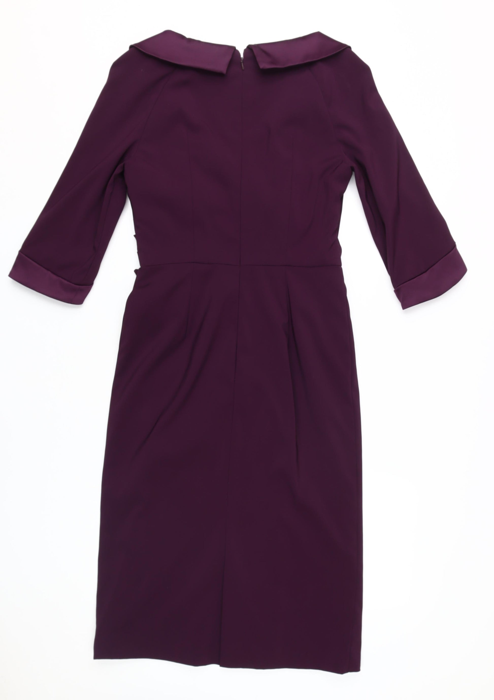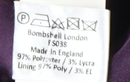 Step into elegance with the Bombshell London Women's Purple Wrap Dress in a sophisticated size 16. Crafted in luxurious polyester and elastane fabric, this knee-length dress is perfect for sophisticated occasions like parties, cocktail events, and weddings. The rich purple colour gives it a regal look, while the satin fabric and cowl neckline add an all-time elegance to your wardrobe. Featuring a classic wrap style, it seamlessly hugs your curves, accentuating your silhouette for that desired feminine charm. The three-quarter sleeves are designed in a chic raglan style, complemented by button accents that add to the dress's refined details. Ideal for cooler months, this dress promises ease of movement with its zip closure, making it both fashionable and functional. You will appreciate the lined structure that offers comfort while ensuring the dress retains its graceful drape. A must-have piece for special occasions, this dress reflects Bombshell London’s timeless appeal. Pair it with your favourite accessories for an added touch of glamour. Its condition is pristine, with tags intact, ensuring you're getting a new and fresh addition to your collection. Dry clean only to maintain its elegance and texture over time.