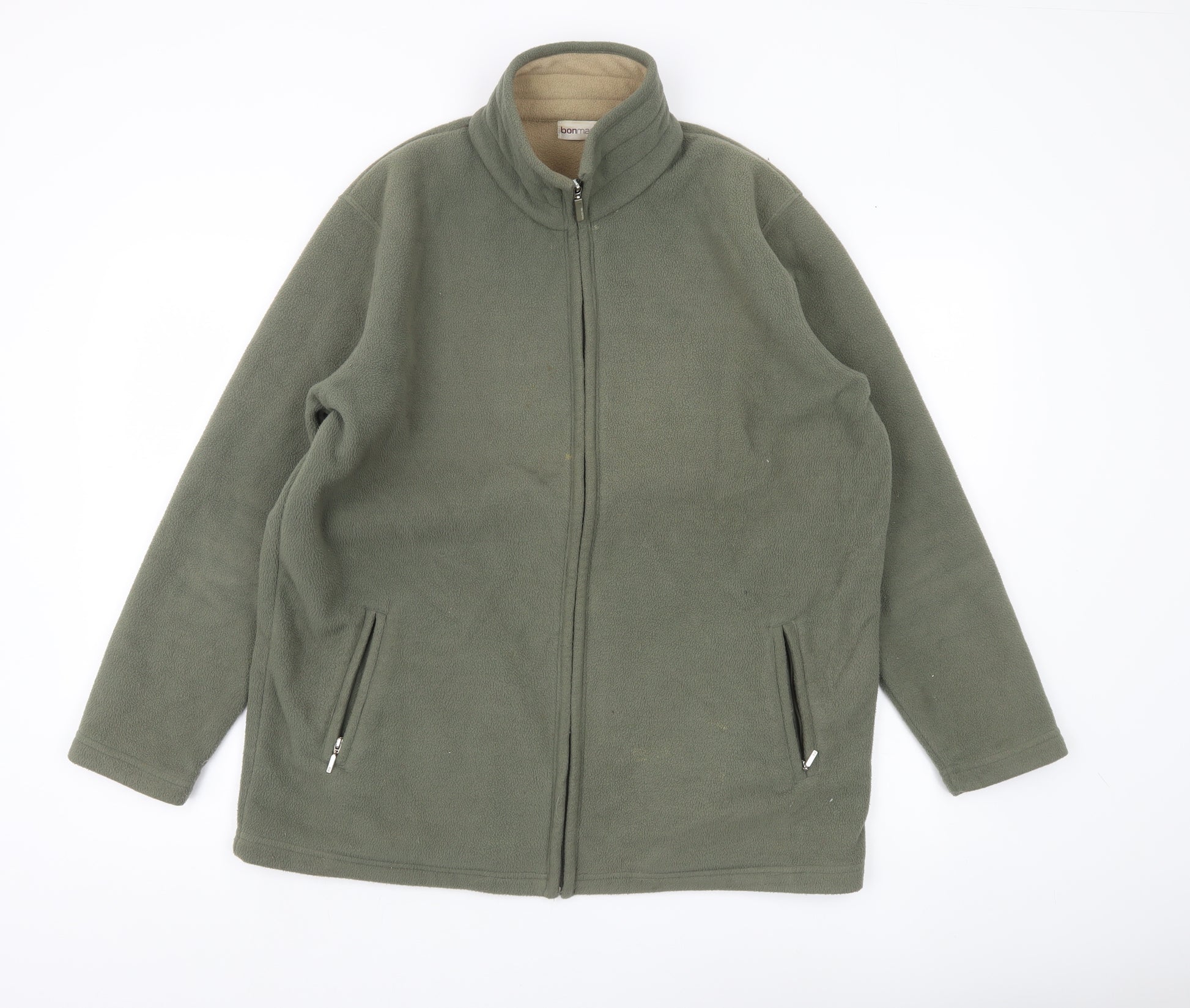 This Bonmarché men's green fleece jacket in size M offers a practical and comfortable option for everyday wear. Crafted from 100% polyester, the jacket is soft, lightweight, and warm, making it well-suited for outdoor activities such as walking, hiking, or casual travel. The fleece construction ensures excellent insulation against cooler weather while remaining breathable enough for multi-seasonal use in autumn, winter, and spring.The jacket features a full zip closure, two practical zipped side pockets for added functionality, and a smart stand-up collar to help keep out the chill. Its mid-length cut and regular fit provide both comfort and ease of movement, making it a versatile layering piece that can be dressed up or down. The solid green colour offers a simple, understated look that is easy to pair with other wardrobe favourites, while the soft fleece lining ensures lasting comfort.With a chest size approximately 40 inches, this jacket delivers a classic, relaxed fit without compromising on style. Designed to be convenient and easy to care for, it is machine washable for added practicality, ideal for those seeking low-maintenance outerwear. Accents such as the zip fastenings enhance both the style and utility, giving the garment a balanced finish that is suited for casual daily wear.Condition is graded as very good, with only light signs of wear and minor marks which do not detract from its overall appeal. This timeless fleece jacket is perfect for layering over casual shirts, t-shirts, or jumpers, providing cosy warmth without unnecessary bulk. Whether for weekend outings, country walks, or just everyday casual use, this Bonmarché fleece is a wardrobe staple for men seeking reliable and functional outerwear that matches both comfort and practicality.An excellent choice at an affordable price, this fleece jacket is a smart investment for the cooler months, offering warmth, versatility, and casual style in one essential piece.