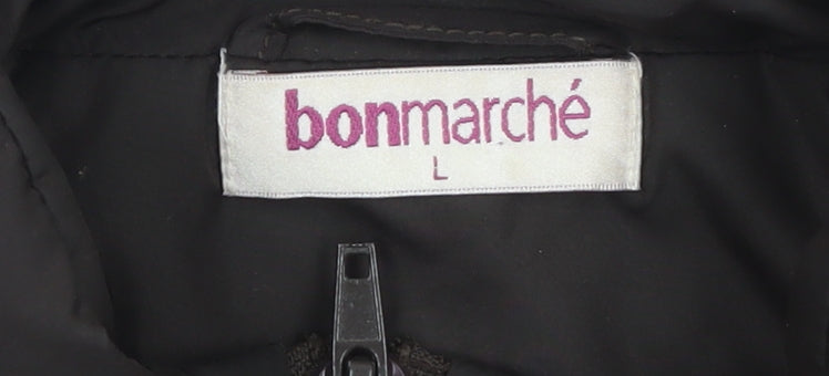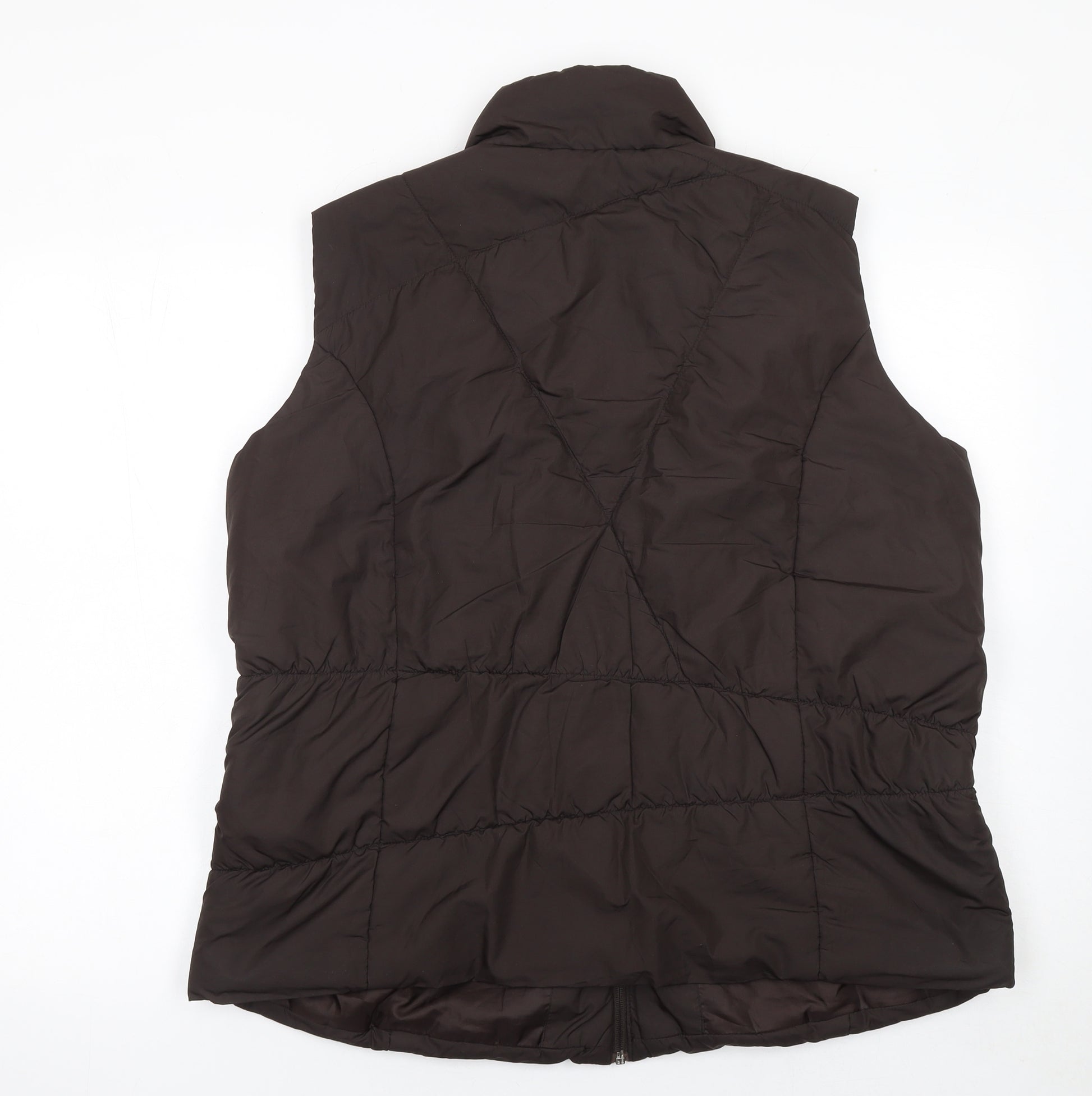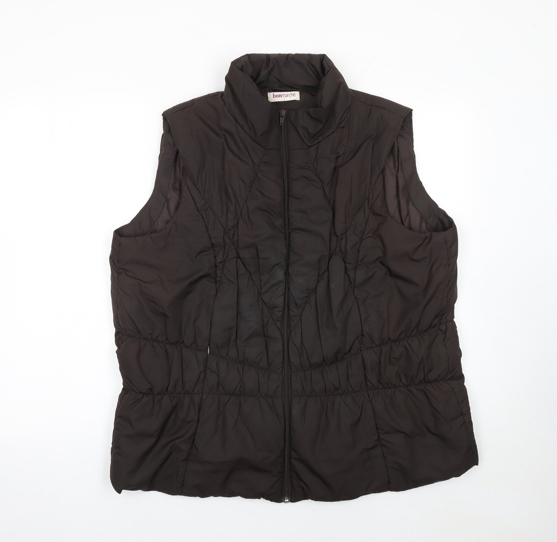 Stay stylish and warm with this Bonmarché women’s brown padded waistcoat, a versatile layering essential perfect for cooler months. Designed in a flattering regular fit, this mid-length gilet offers a comfortable and practical outerwear option suitable for casual outings, travel, or everyday wear. The sleek brown tone provides a classic and understated look that can easily be paired with jeans, knits, or long-sleeve tops for effortless styling.Crafted from durable 100% polyester, the outer shell and lining ensure lightweight warmth without the bulk. The quilted pattern enhances the aesthetic appeal while adding subtle texture and structure. A full front zip closure makes for easy wear, while the lightly padded insulation provides a cosy feel ideal for autumn and winter. Designed with functional pockets, it’s practical for keeping your hands warm or storing small essentials. The waistcoat’s sleeveless design offers freedom of movement and makes it a great transitional piece for layering under coats or over sweaters.The lightweight and lined construction ensures a comfortable wearing experience across a range of activities and settings. Whether you’re heading out for a country walk, running errands, or adding an extra layer on a chilly morning commute, this Bonmarché gilet combines practicality and timeless appeal. The quilted accents lend a stylish detail without sacrificing comfort or function.Conditioned in excellent pre-owned state with only light signs of wear, this waistcoat is clean, well-maintained, and ready to wear. The machine washable fabric makes it easy to care for, offering durability and convenience.If you’re looking for a versatile layering piece that keeps you warm while maintaining a sleek silhouette, this Bonmarché brown quilted waistcoat is the perfect addition to your wardrobe. Ideal for women seeking a classic and dependable gilet with subtle stylish details at an affordable price, it’s a must-have for practical seasonal dressing.