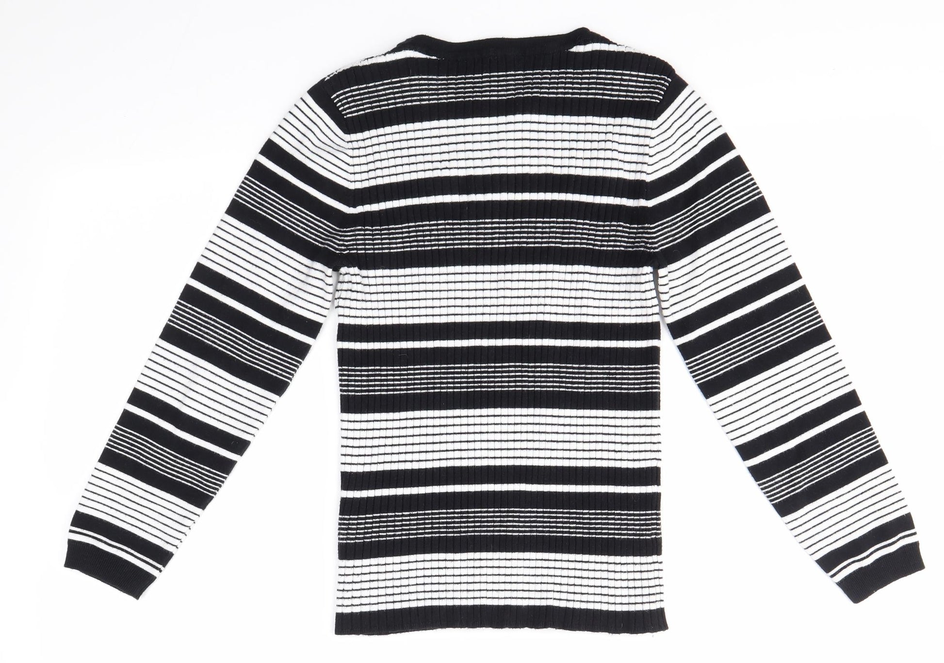 Womens Black Round Neck Striped Viscose Pullover Jumper Size S