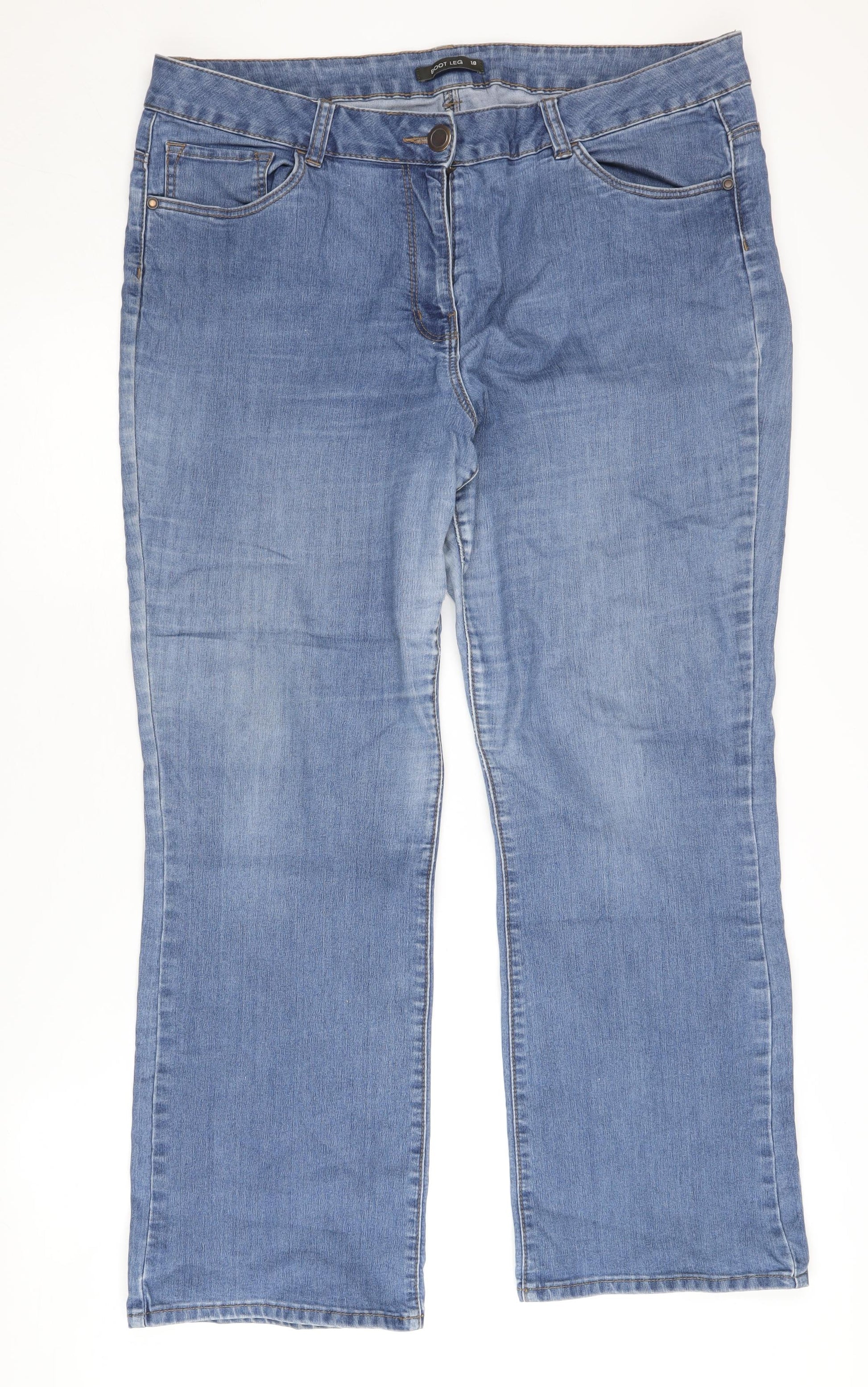 Showcase effortless style with these Bonmarché Women's Blue Bootcut Jeans, designed for fashion-forward comfort. In size 18, these jeans are crafted from a durable denim blend of 70% Cotton, 28% Polyester, and 2% Elastane, ensuring a comfortable fit with a slight stretch. These jeans feature a regular fit, classic bootcut style, and medium fabric wash, making them a versatile addition to your wardrobe. Perfect for autumn, spring, and summer seasons, they come with practical 5-pocket design and a secure button closure, ideal for daily wear or casual outings. Pair them with your favourite top and you're ready to step out in style. With a condition marked as excellent, these jeans may show slight wear but remain in superb condition, free from stains. Priced at 12.75, they offer incredible value. Don't miss out on the chance to own a stylish pair that combines both comfort and classic design, perfect for enhancing any outfit you choose.