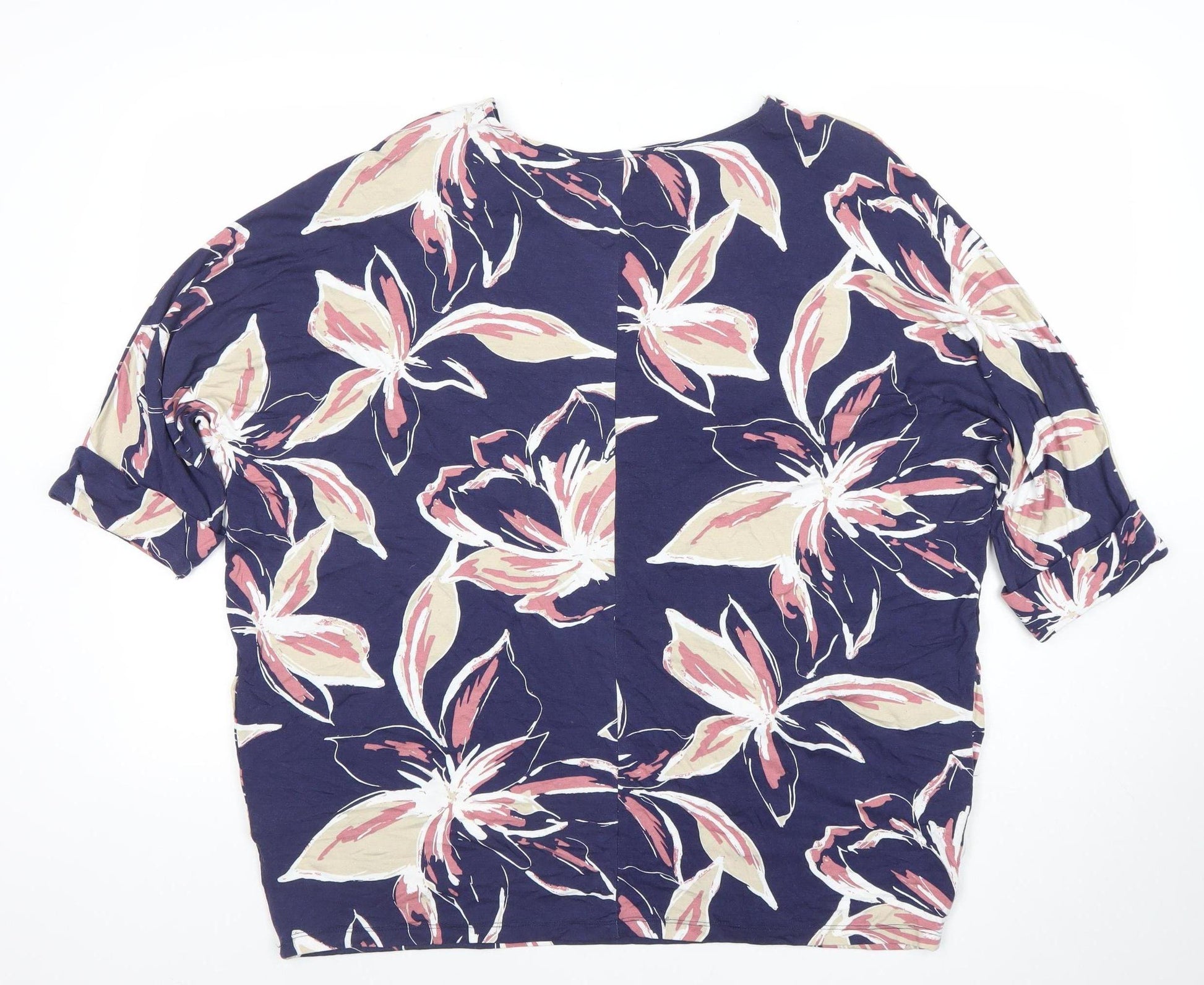 Womens Blue Floral Jersey Tunic Blouse Size 14