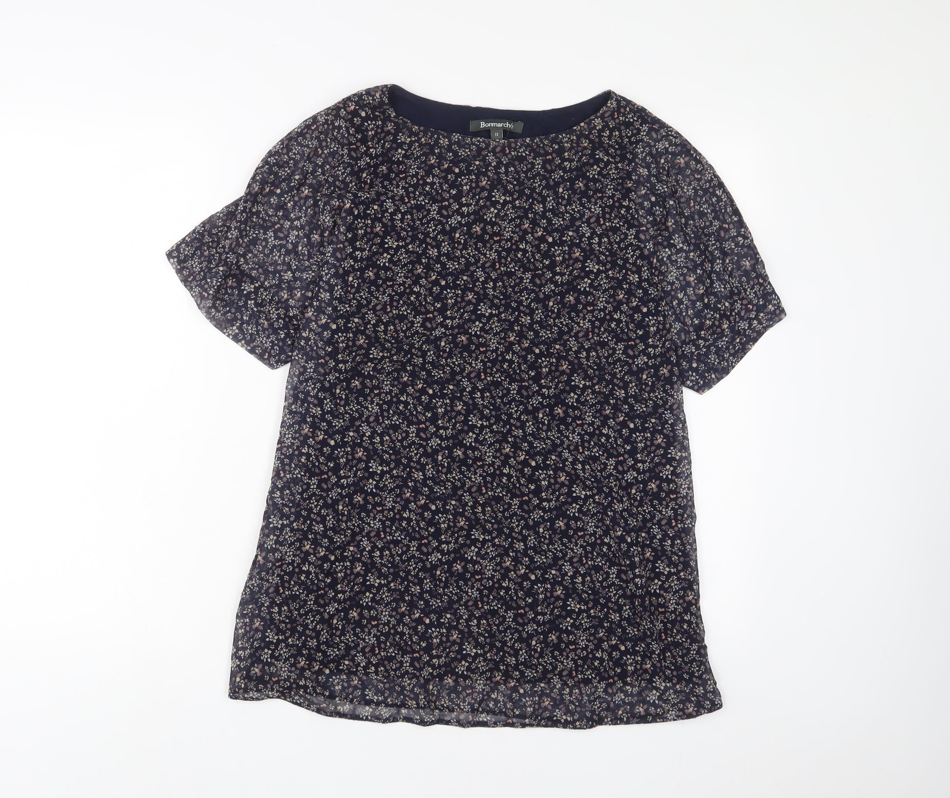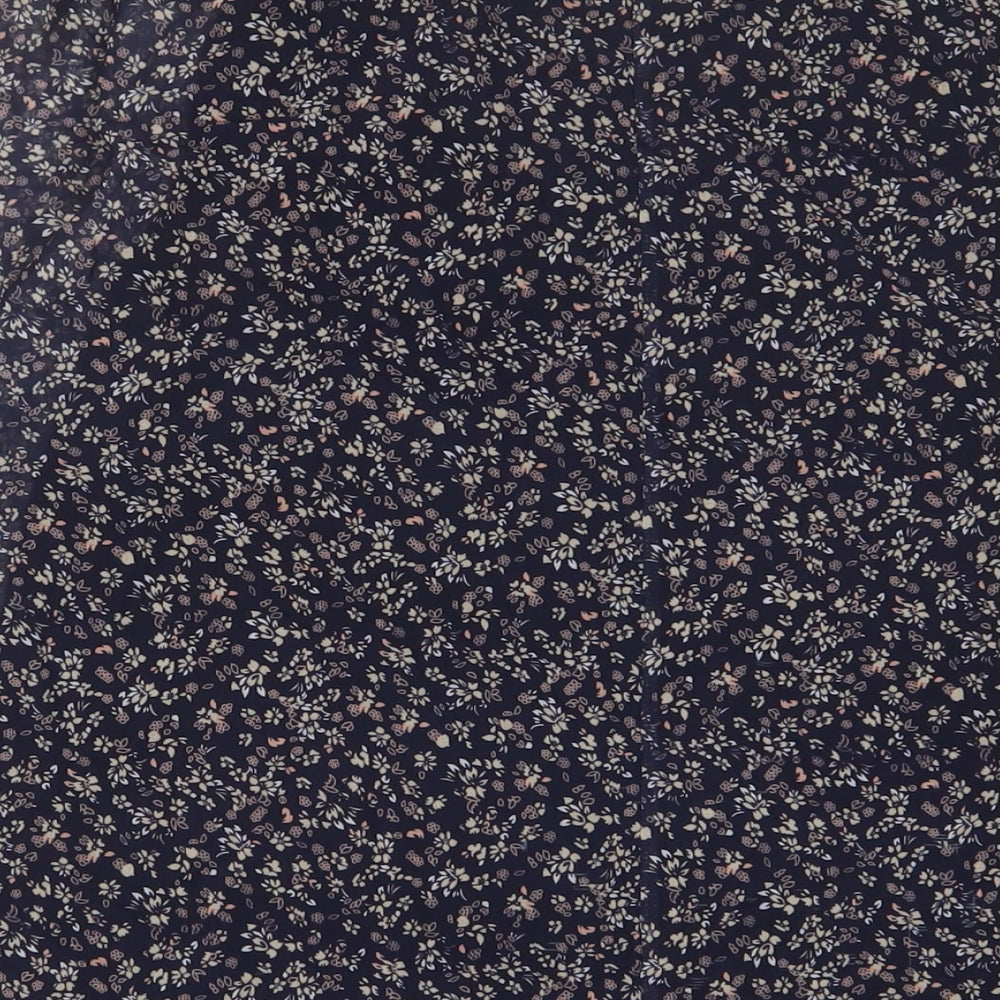 Womens Blue Floral Polyester Basic T-Shirt Size 12 Crew Neck