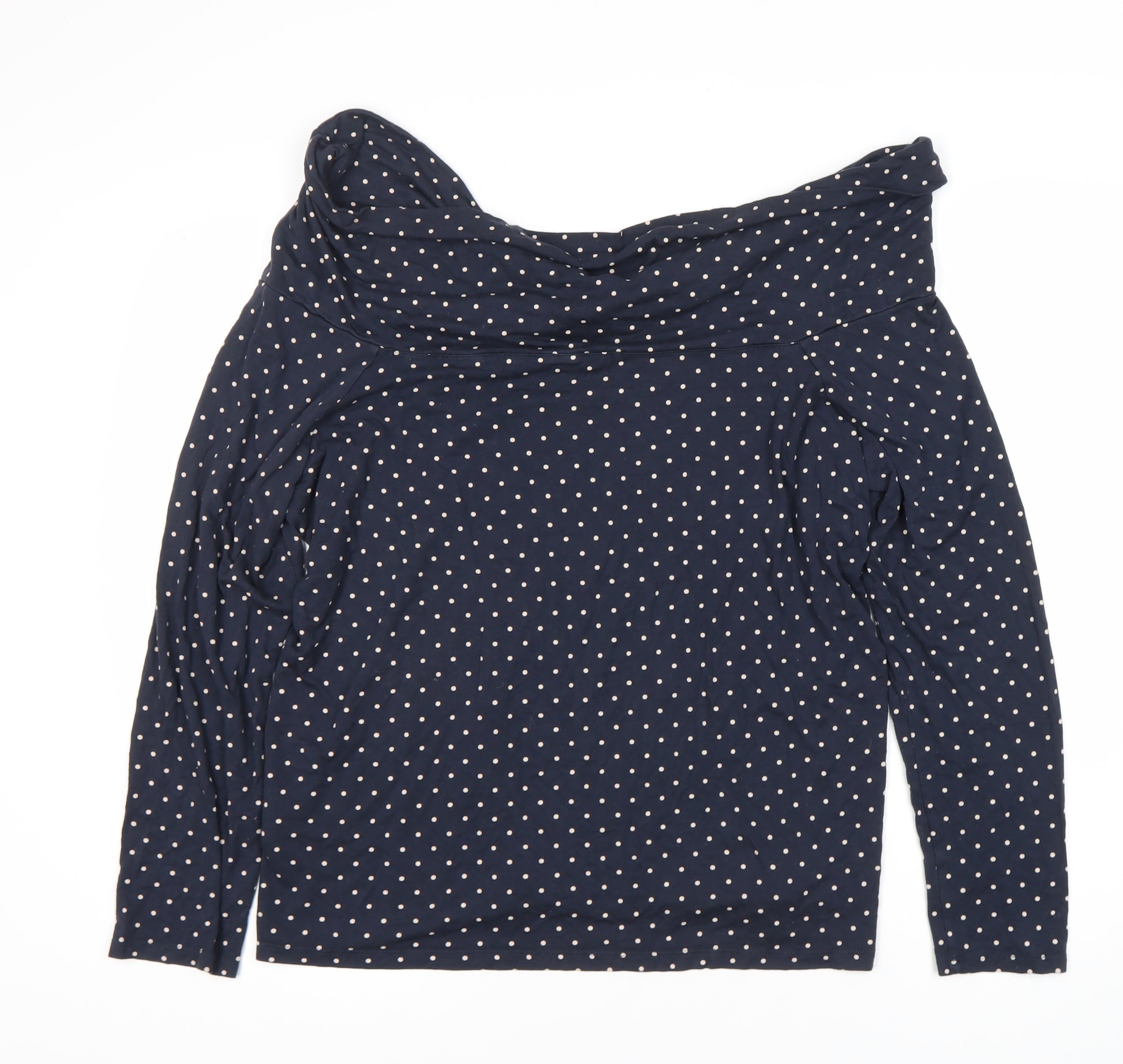 Elevate your everyday style with this Bonmarche Women's Cowl Neck Top, perfect for effortless elegance and comfort. Crafted from a soft and stretchy blend of 95% Viscose and 5% Elastane, this top offers a relaxed and flattering fit, ensuring all-day comfort without compromising on style. The elegant blue fabric is adorned with charming polka dots, adding a playful touch to your wardrobe. Designed with a sophisticated cowl neck, this top drapes beautifully, creating a flattering neckline that adds a touch of grace to any ensemble. The long sleeves offer a stylish silhouette, making it an ideal choice for cooler days or transitioning seasons. Pair it with your favourite jeans or tailored trousers for a chic yet casual look. This versatile piece is perfect for casual occasions, whether you're meeting friends for coffee or enjoying a relaxed day out. Easily machine washable, this top is designed for low-maintenance care, keeping it looking pristine and vibrant wash after wash. Though pre-loved, it remains in excellent condition with no visible wear, offering incredible value. Add this Bonmarche top to your collection for an effortlessly chic addition that seamlessly blends style with practicality.
