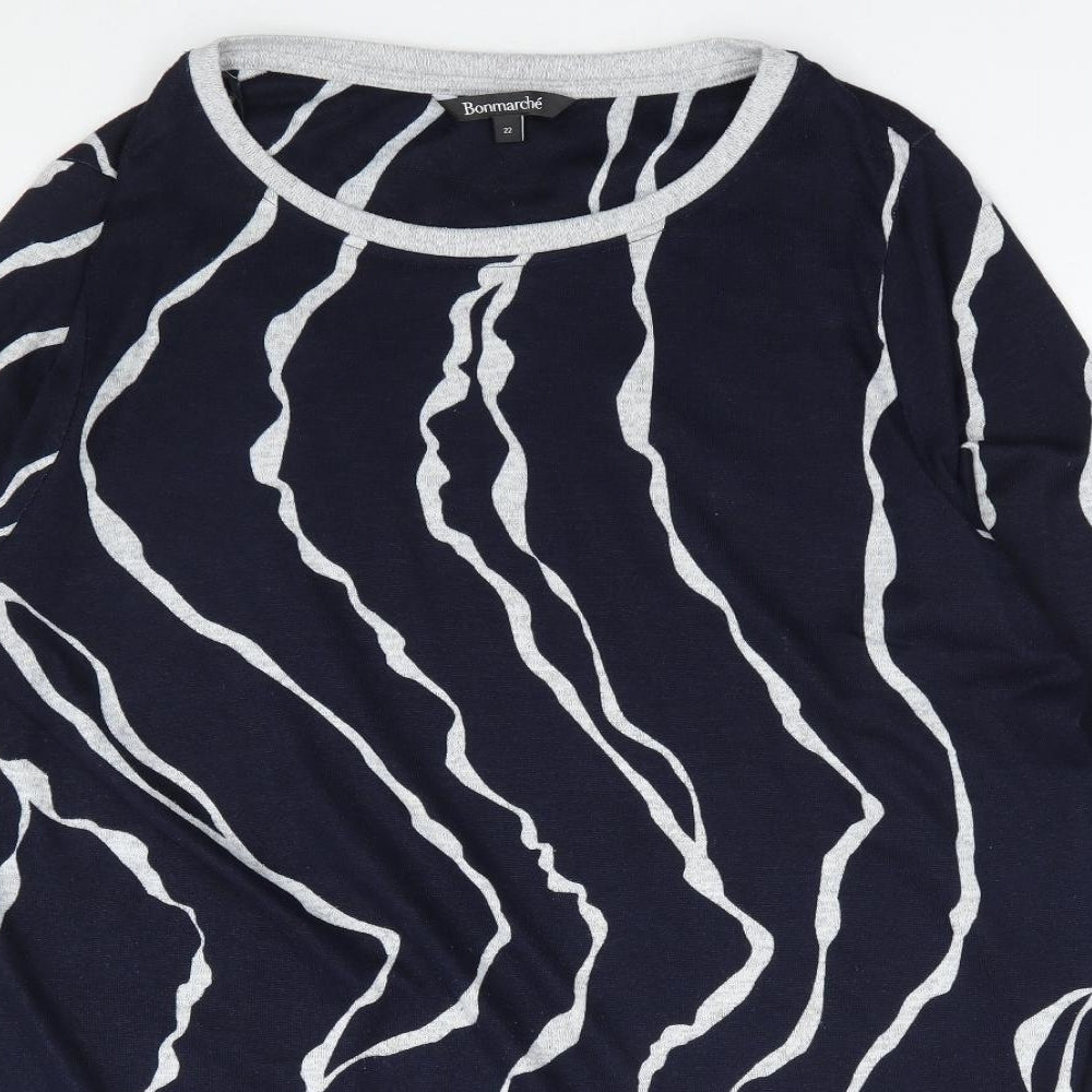 Womens Blue Round Neck Geometric Polyester Tunic Jumper Size 22
