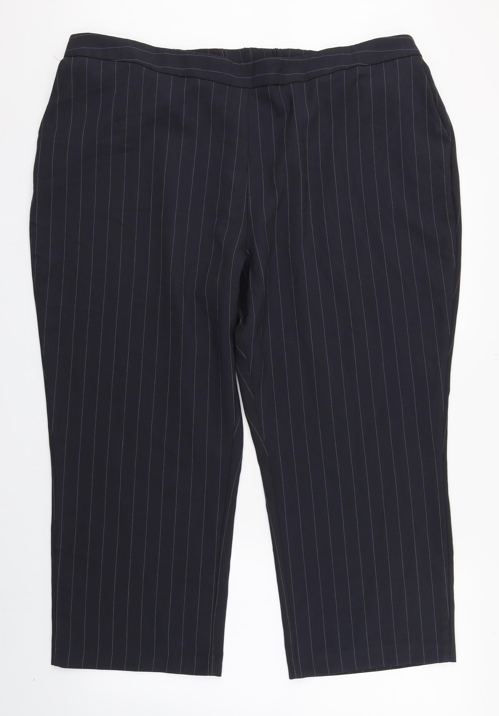 Womens Blue Striped Polyester Capri Trousers Size 24 L24 in Regular