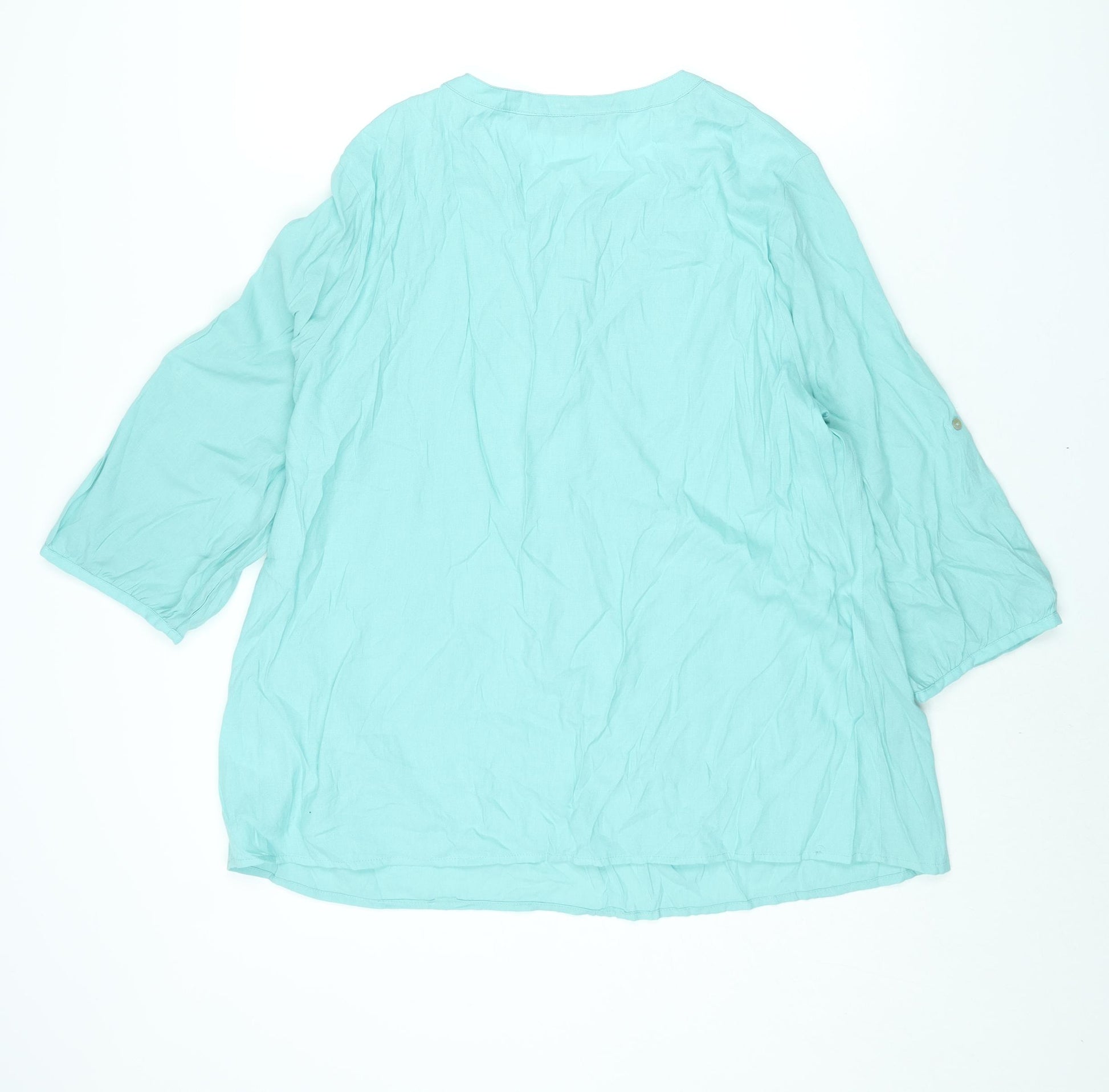 Womens Blue Viscose Basic Blouse Size 20 Round Neck