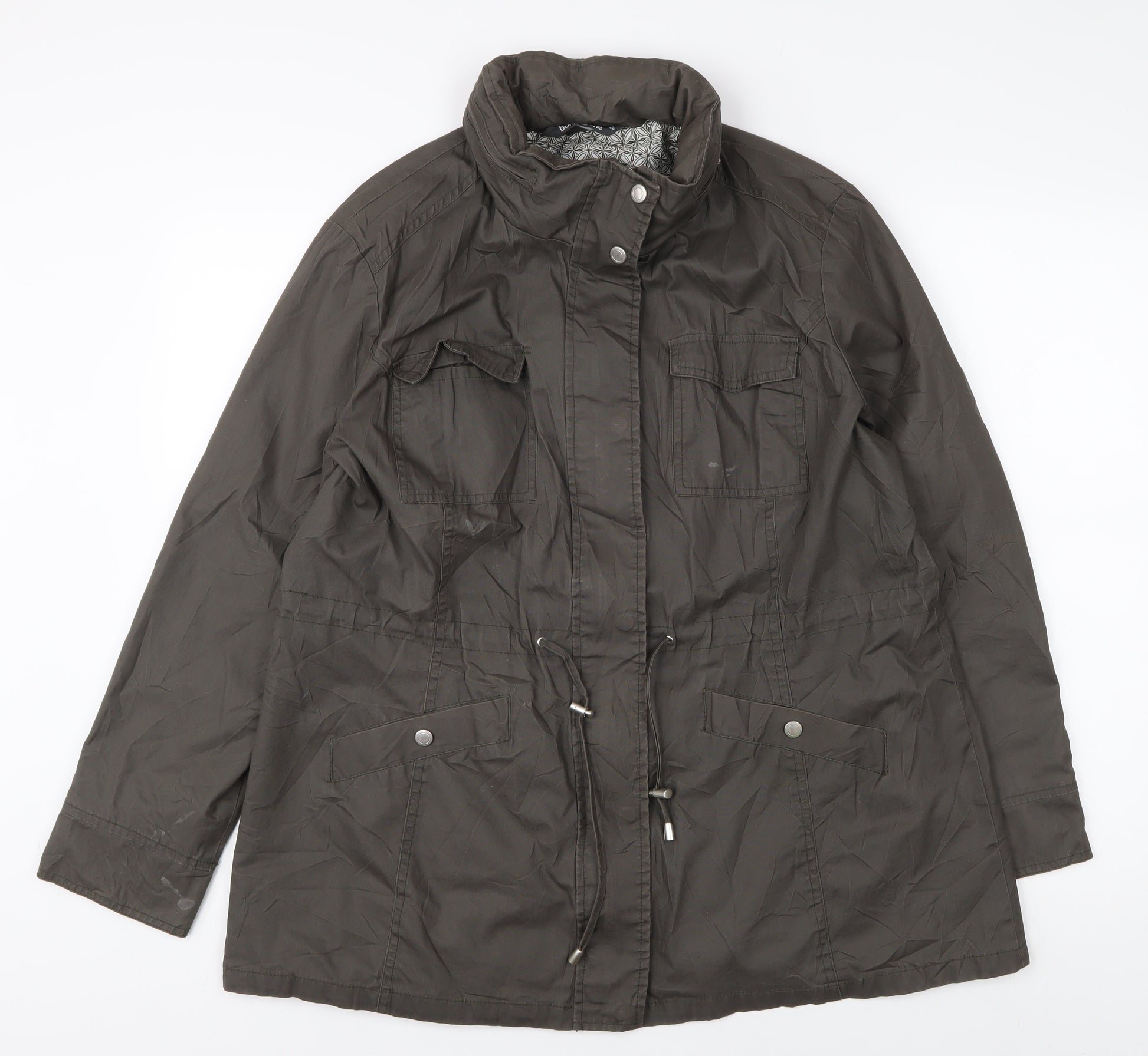 Explore timeless style with this Brown Bonmarché Military Jacket, perfect for adding a touch of classic charm to your wardrobe. Designed for women, this jacket features a regular fit in size 18, offering a comfortable and flattering silhouette. The jacket's mid-length style and drawstring waist create a chic figure-enhancing effect, while button and zip closures ensure practicality and style. Made from 100% cotton with a polyester lining, it promises comfort and durability for all-day wear. Enjoy versatile styling options with its neutral brown colour, providing easy matching with various outfits. Ideal for casual outings, this jacket suits both autumn and spring seasons. It remains in excellent condition, reflective of gentle past use, and ready to accompany you on many more adventures. Whether striding through cityscapes or strolling along country lanes, this jacket is set to be a beloved, durable addition to your collection.