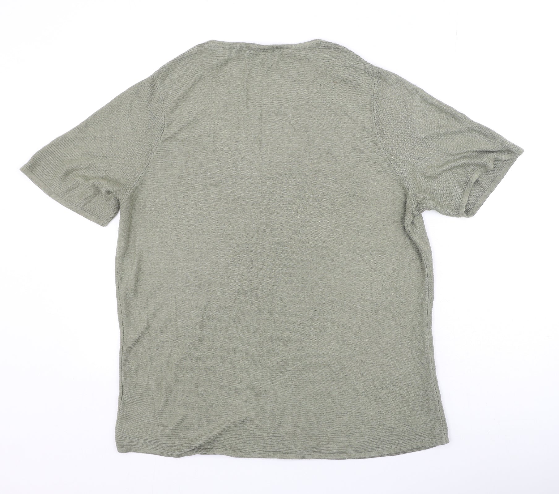 Womens Green Acrylic Basic T-Shirt Size 20 V-Neck