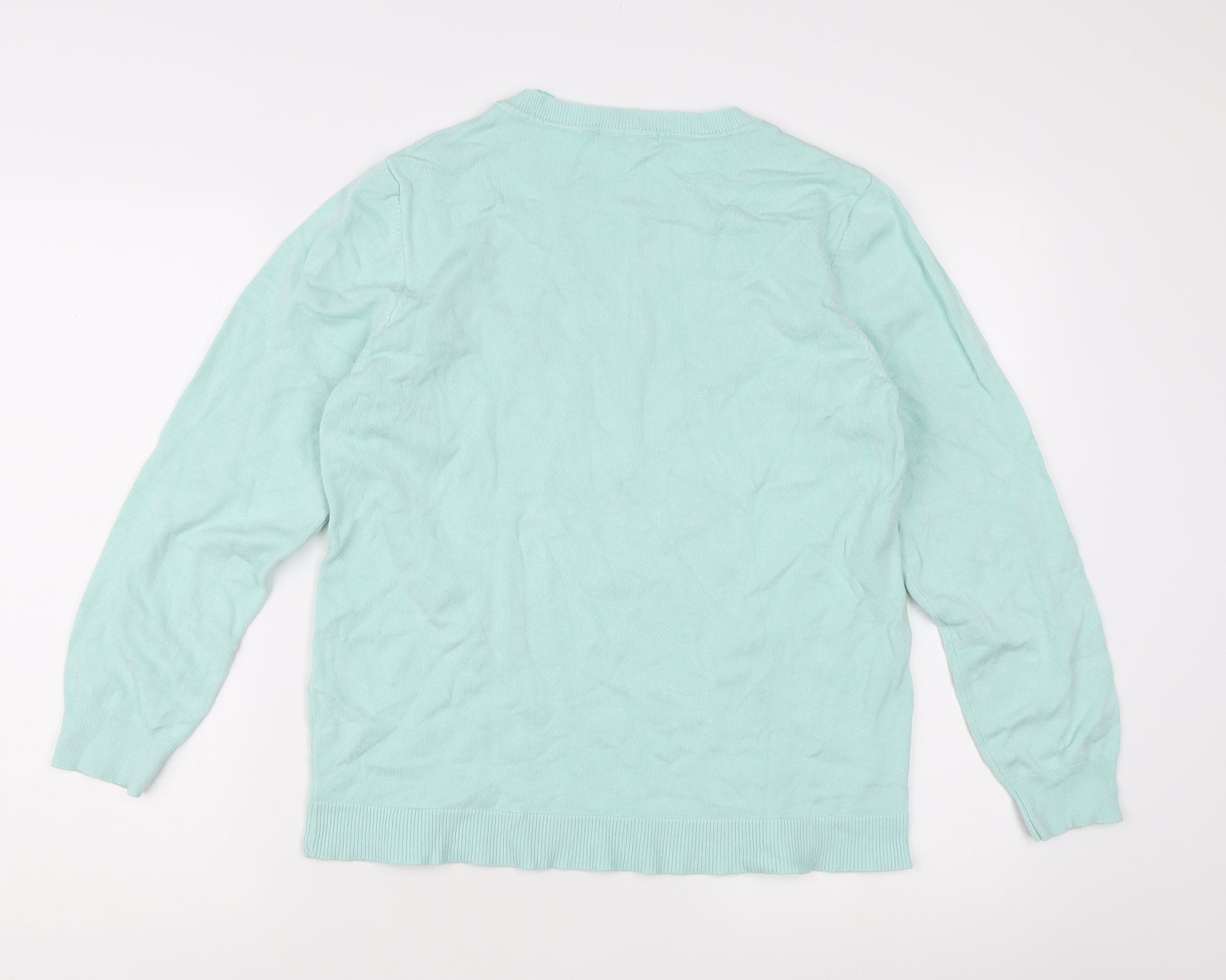 Elevate your wardrobe with this beautiful Bonmarché women’s jumper, a perfect blend of comfort, style, and seasonal versatility. Designed in a flattering size 12 fit, this charming piece comes in a soothing green shade, adding a refreshing pop of colour to your outfit. The lightweight knit construction ensures breathable comfort, making it ideal for both spring and autumn wear. Featuring a classic crew neckline and long sleeves, this pullover style jumper offers a timeless silhouette that pairs effortlessly with jeans, trousers, or skirts for a range of casual occasions.The standout detail of this jumper is its delicate embroidered floral pattern, which adds a soft, feminine touch to the overall design. Crafted from a quality fabric blend of 70% viscose and 30% nylon, it boasts a smooth, tight-knit texture that not only feels soft against the skin but also retains its shape well over time. Easy to care for, this jumper is machine washable, making it both stylish and practical for regular wear.Whether you’re heading out for a relaxed day with friends, enjoying a casual stroll, or simply looking for a chic yet comfortable layer to keep you warm, this Bonmarché jumper will be a versatile and welcome addition to your wardrobe. Its soft green hue and embroidered accents create a subtle yet eye-catching appeal, ensuring it stands out without being overpowering.In excellent condition with only minimal signs of wear, it promises plenty of life and enjoyment for the next owner. Pair it with boots and a scarf for a cosy autumn look, or team it with light denim in spring for an effortlessly chic vibe. With its quality craftsmanship, flattering fit, and pretty decorative details, this Bonmarché jumper is a fantastic choice for anyone seeking stylish knitwear at an affordable price.