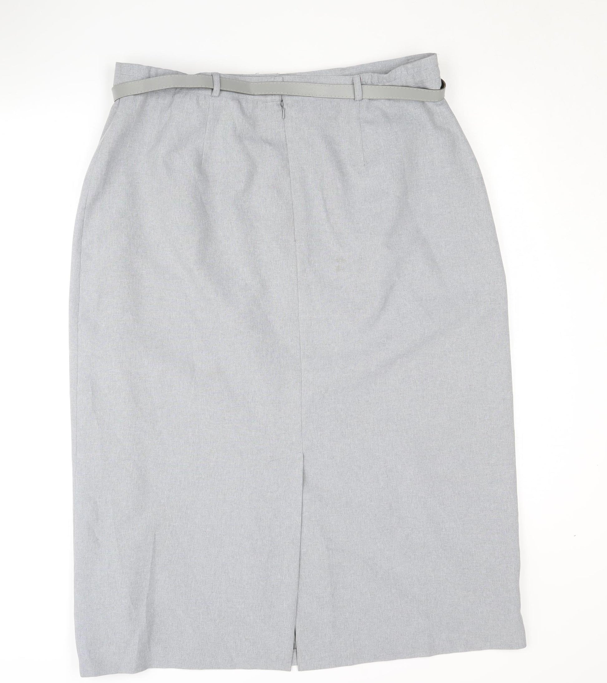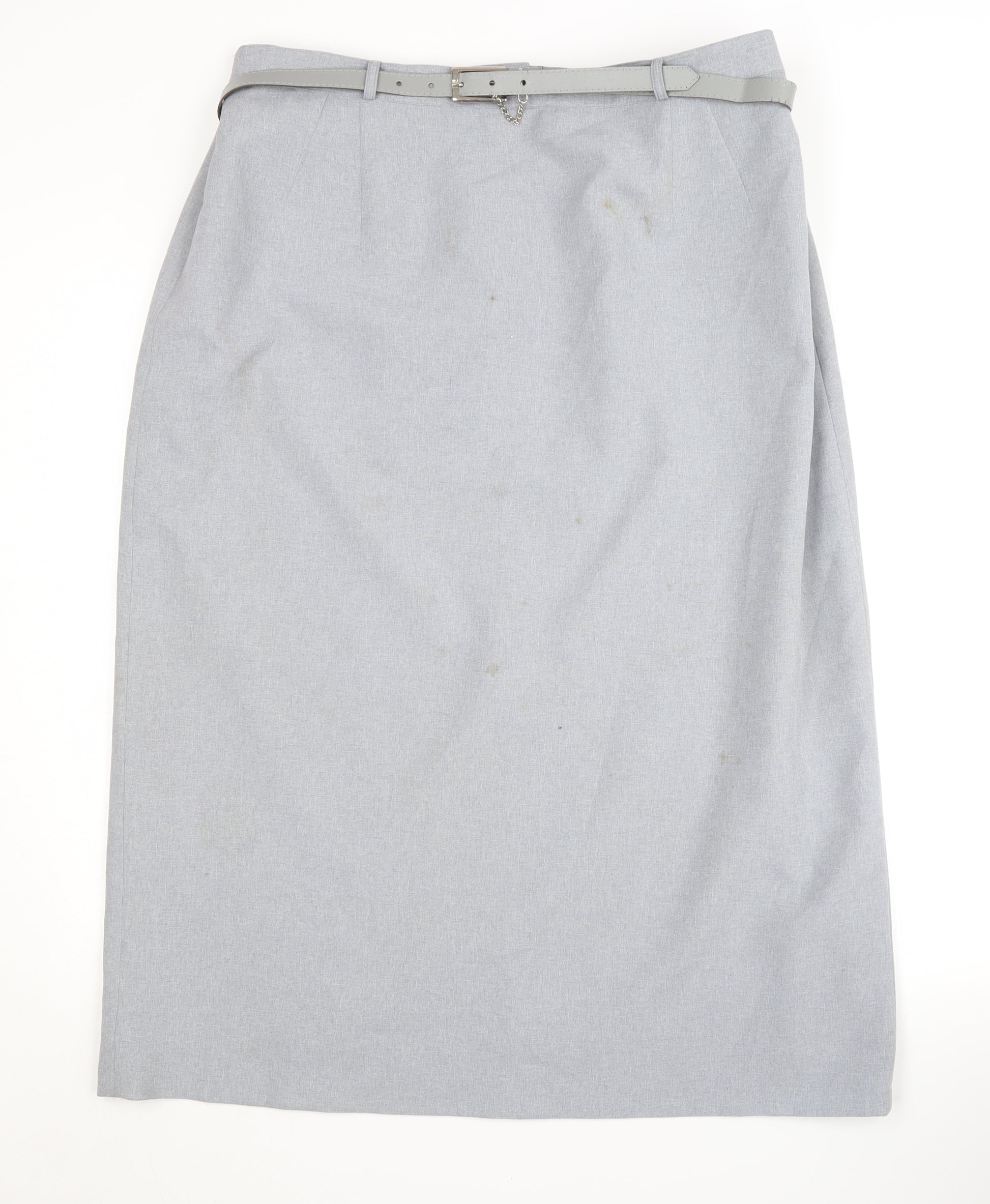 Elevate your workwear wardrobe with this classic grey pencil skirt from Bonmarché. Designed for women, this midi-length skirt is perfect for the office or formal occasions, providing a sleek and professional look. Its straight and pencil style ensures a flattering silhouette, while the subtle zip closure at the back provides a clean and sophisticated finish. Crafted from 100% polyester, this skirt is machine washable, making it easy to care for and suitable for all seasons. The skirt features a small slit at the back, offering greater ease of movement while maintaining its elegant appearance. Although the skirt is in good condition, please note the presence of some visible stains, reflected in the affordable pricing. Ideal for pairing with blouses or jackets, this versatile piece will be a valuable addition to your professional wardrobe. The absence of patterns and accents further enhances its minimalist charm, ensuring it complements various styles and colours effortlessly. Don't miss this opportunity to own a timeless and reliable skirt that combines style, comfort, and value.