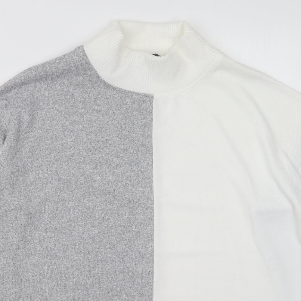 Womens Grey Mock Neck Polyester Pullover Jumper Size 12 - Colour Block