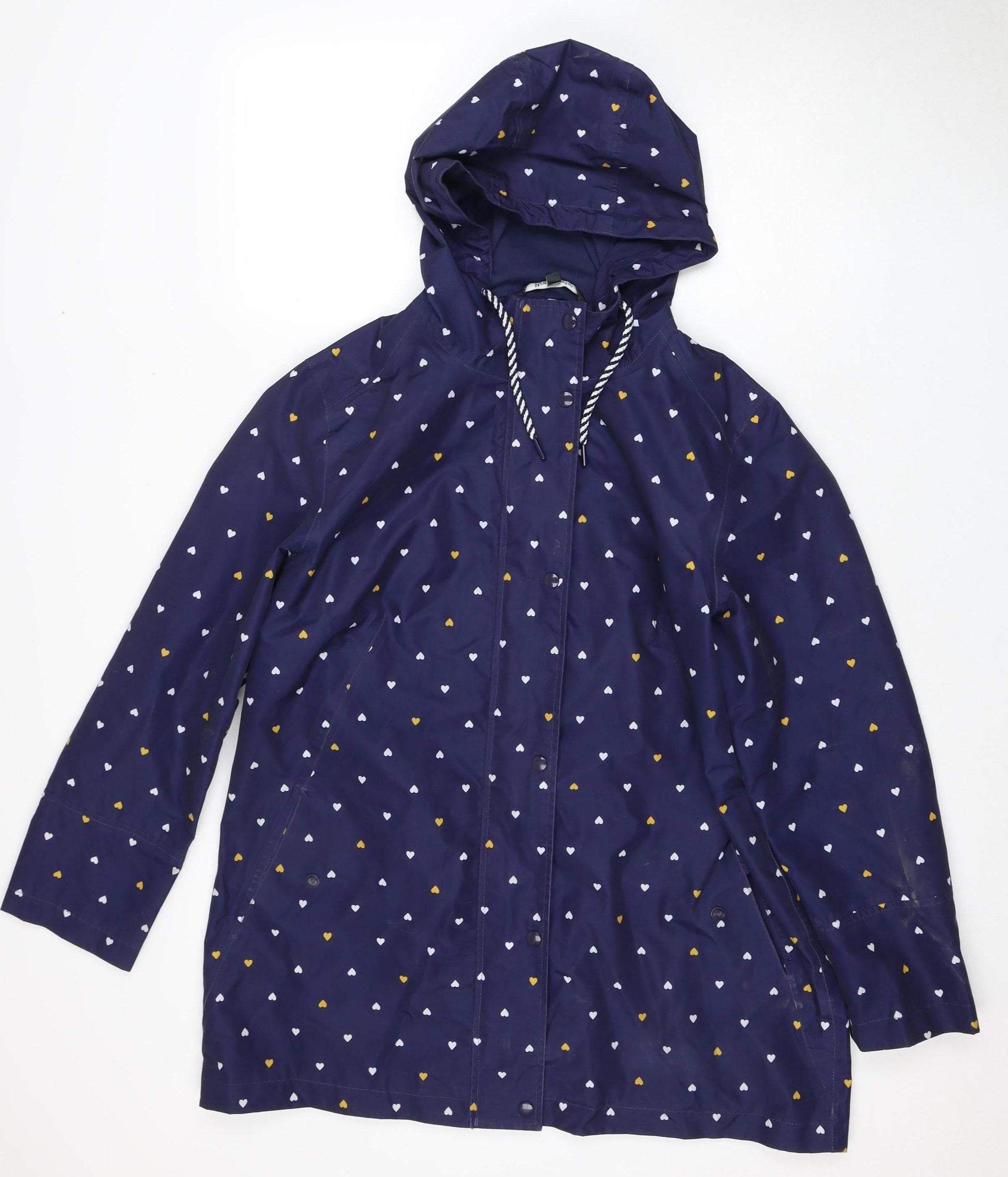 Add a touch of style to your outerwear collection with this navy geometric jacket from Bonmarché. Designed for women, this jacket offers a comfortable fit in a size 14. Crafted from 100% polyester, it features a practical hood and long sleeves, making it perfect for a variety of weather conditions. The geometric pattern adds an eye-catching element to the design, ensuring you stand out in any crowd. Machine washable for easy care, this jacket is suitable for everyday wear, whether you're heading to the office or enjoying a casual day out. In excellent condition, it's an ideal choice for anyone seeking a stylish yet practical addition to their wardrobe. Don't miss out on this versatile piece that combines fashion with functionality. Upgrade your collection today with this chic Bonmarché jacket.