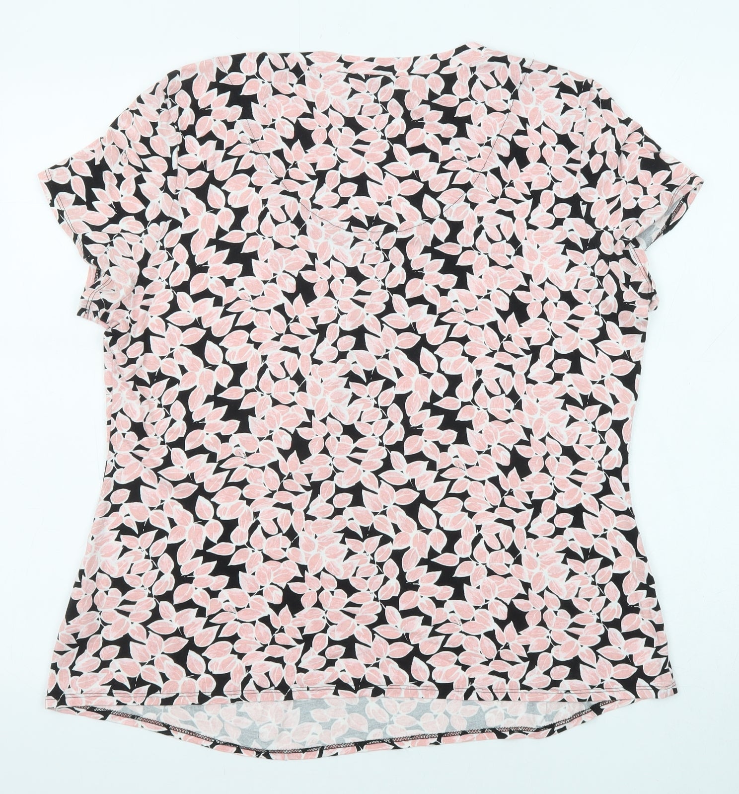 Womens Pink Geometric Viscose Basic T-Shirt Size 18 Boat Neck