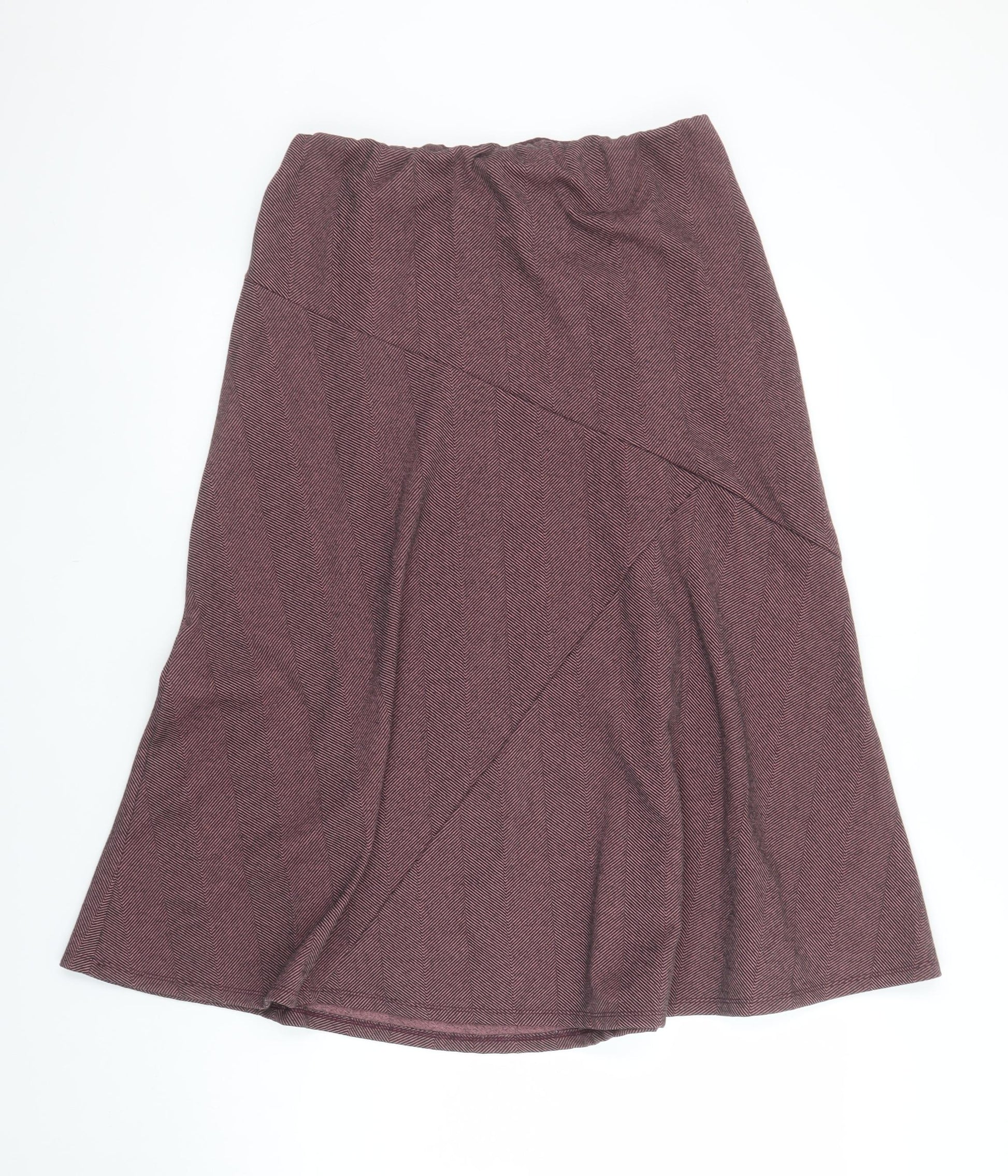 Add a touch of effortless elegance to your everyday wardrobe with this Bonmarché Women's Purple A-Line Midi Skirt in size 14. Crafted from soft and lightweight 100% polyester fabric, this skirt features a subtle herringbone pattern that adds depth and character to the overall look. The A-line shape provides a flattering fit that gently flares from the waist, ensuring a comfortable and stylish silhouette suitable for a variety of occasions. Designed with an elasticated waist, it allows for easy wear and flexibility, making it perfect for all-day comfort. The skirt’s midi length offers a classic and versatile design that pairs beautifully with blouses, knitwear, and smart jackets alike. The mid-rise fit and lightweight construction make it an ideal choice for cooler autumn and winter seasons, while still being breathable enough to transition into spring. Whether you’re styling it for a casual day out or adding polish to a workwear ensemble, this Bonmarché piece delivers timeless sophistication. Made in Sri Lanka, it’s finished with reliable machine-washable care instructions to ensure easy maintenance. The material’s gentle texture and flow enhance mobility and comfort while maintaining durability for regular wear. In excellent pre-loved condition with no visible flaws, this skirt is a smart choice for anyone seeking both comfort and style without compromise. Perfectly balanced between practicality and feminine charm, this Bonmarché A-line skirt embodies accessible classic fashion designed to complete your wardrobe staples. Pair it with ankle boots or loafers and a tucked-in blouse for an effortlessly chic outfit that works from day to night.