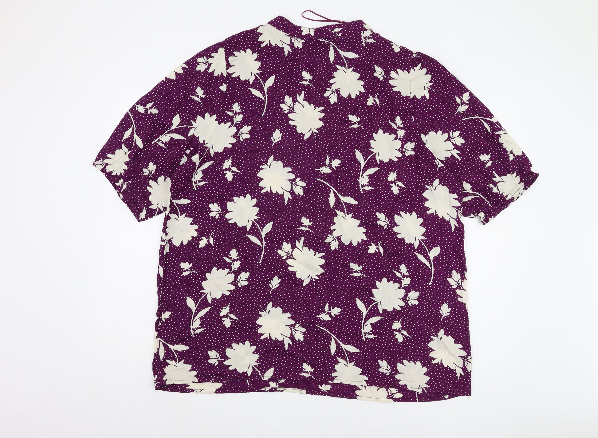 Elevate your wardrobe with this charming Bonmarché blouse, perfect for adding a pop of colour to your spring and summer collection. Made in a vibrant purple hue adorned with a delicate floral pattern, this blouse is designed for women who appreciate style without sacrificing comfort. The regular fit and classic short sleeves ensure you'll look and feel great whether you're off to a casual gathering or enjoying a day out. Crafted from 100% Viscose, it offers a soft feel against the skin and breathability that suits warm seasons. Machine washable for easy care, this blouse maintains its vibrant look wash after wash. In excellent condition with no visible defects, this piece assures quality and durability. Transform an everyday look with this versatile blouse, suitable for casual occasions and perfect for layering. Complete with a neckline that adds a touch of elegance, it's an essential addition for those who value classic style and comfort. Don't miss the chance to make it yours; at such a great value, it’s a perfect opportunity to enhance your wardrobe with a piece that combines elegance and practicality.