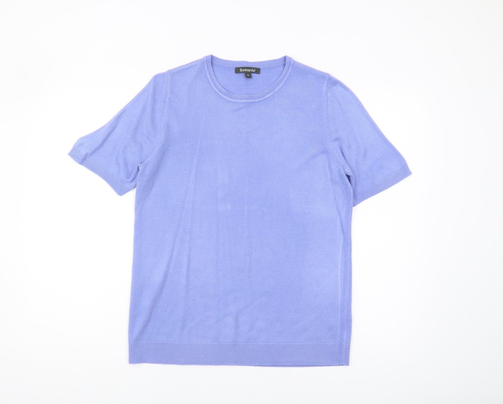 Step into effortless style with this charming Bonmarché women's pullover jumper. Featuring a beautifully soft purple hue, this lightweight piece is perfect for casual spring and summer outings. Crafted from a snug knit acrylic fabric, the jumper promises day-long comfort, making it an ideal pick for any casual occasion. Designed with a classic crew neckline and short sleeves, it pairs seamlessly with jeans or skirts. This regular fit jumper offers an uncomplicated look, void of patterns for a sleek aesthetic. The high-quality construction ensures it withstands regular wear and machine washing, while maintaining its delightful colour and form. In excellent condition with minimal wear, this Bonmarché jumper adds a touch of simplicity and elegance to any wardrobe. Elevate your everyday look by adding this versatile piece to your collection!