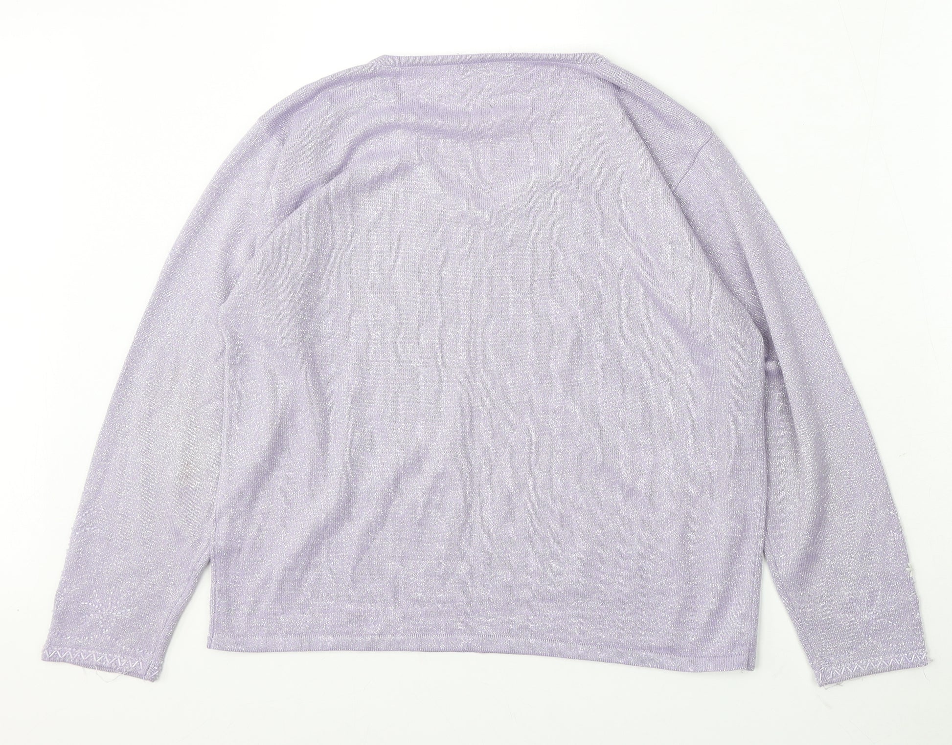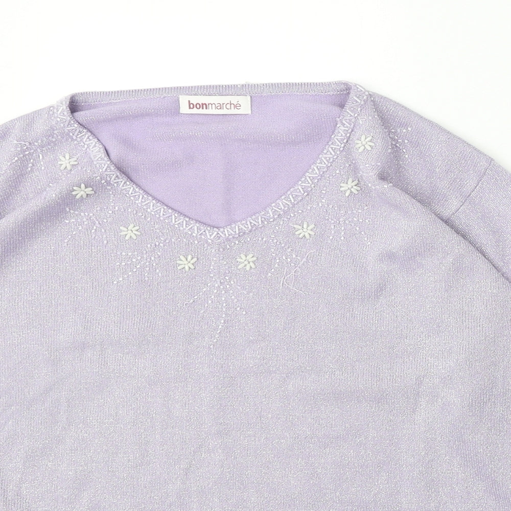 Womens Purple V-Neck Acrylic Pullover Jumper Size M