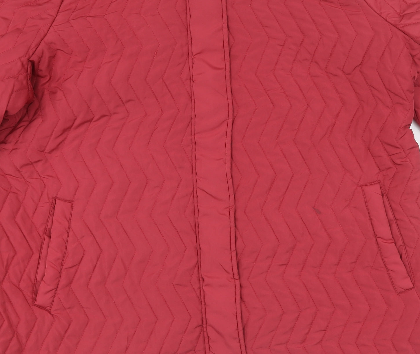 This Bonmarché Women's Red Puffer Jacket is a must-have for the winter season. Designed to keep you warm and stylish, it features a quilted pattern and is made from durable polyester. The jacket has a comfortable mid-length cut and is padded for extra insulation, making it ideal for chilly days. It comes in a vibrant red colour, perfect for adding a pop of colour to your wardrobe. The jacket is adorned with practical features like a hood and secure zipper, ensuring you stay cozy and dry whatever the weather. With its regular fit, this jacket provides room for layering, making it versatile for casual outings. Despite a few signs of minor wear on the material, it remains in excellent condition and ready for a new lease of life. Elevate your casual wear with this dynamic piece that combines functionality with effortless style. Ideal for the fashion-forward woman, this jacket is a delightful blend of practicality and chic design.