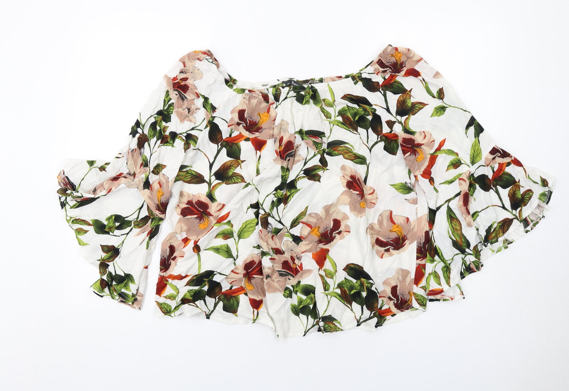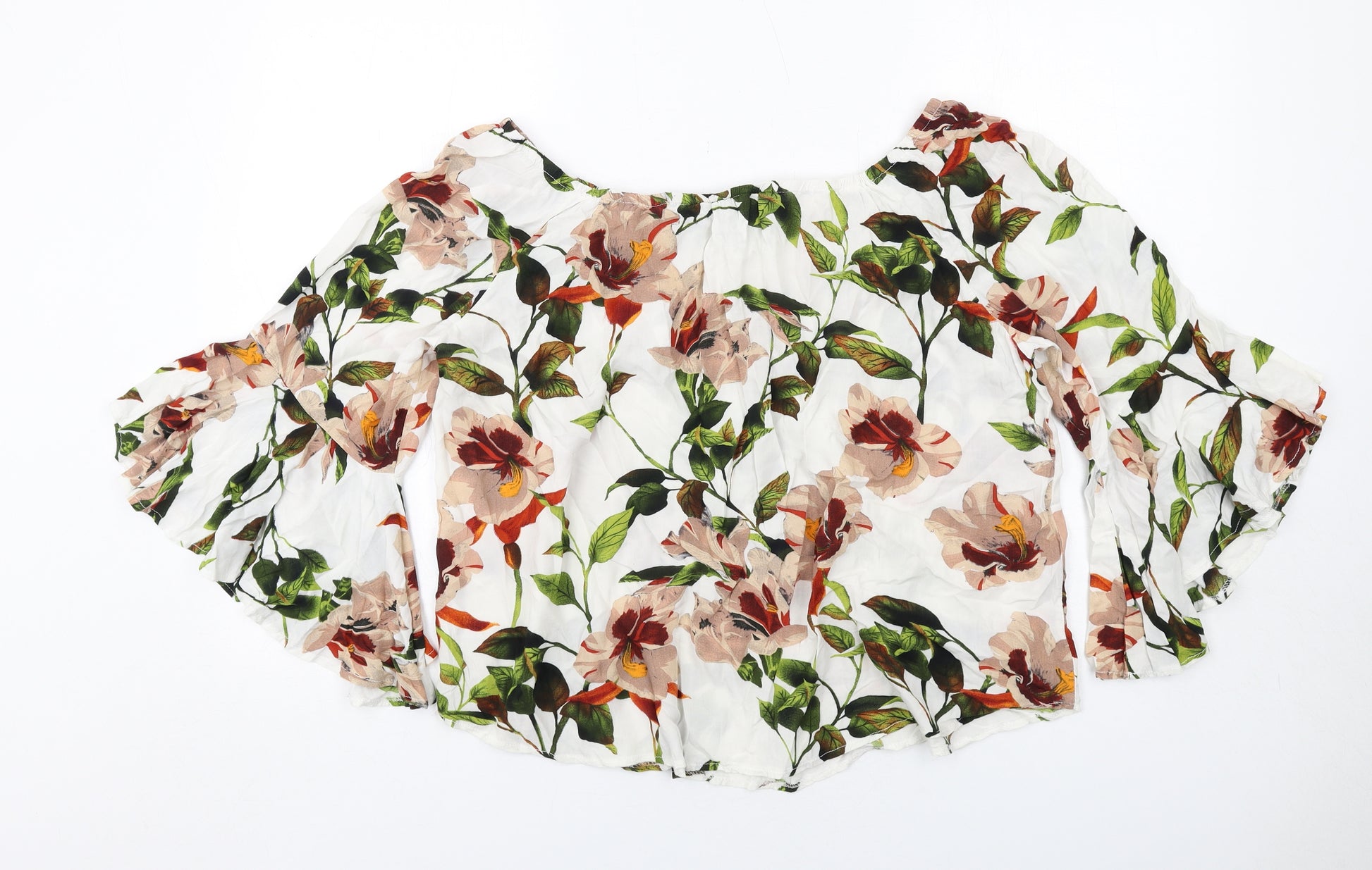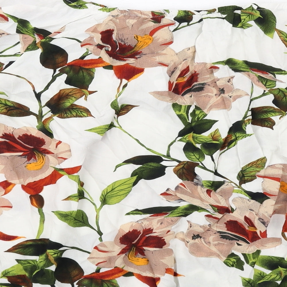 Womens White Floral Viscose Basic Blouse Size 18 Square Neck