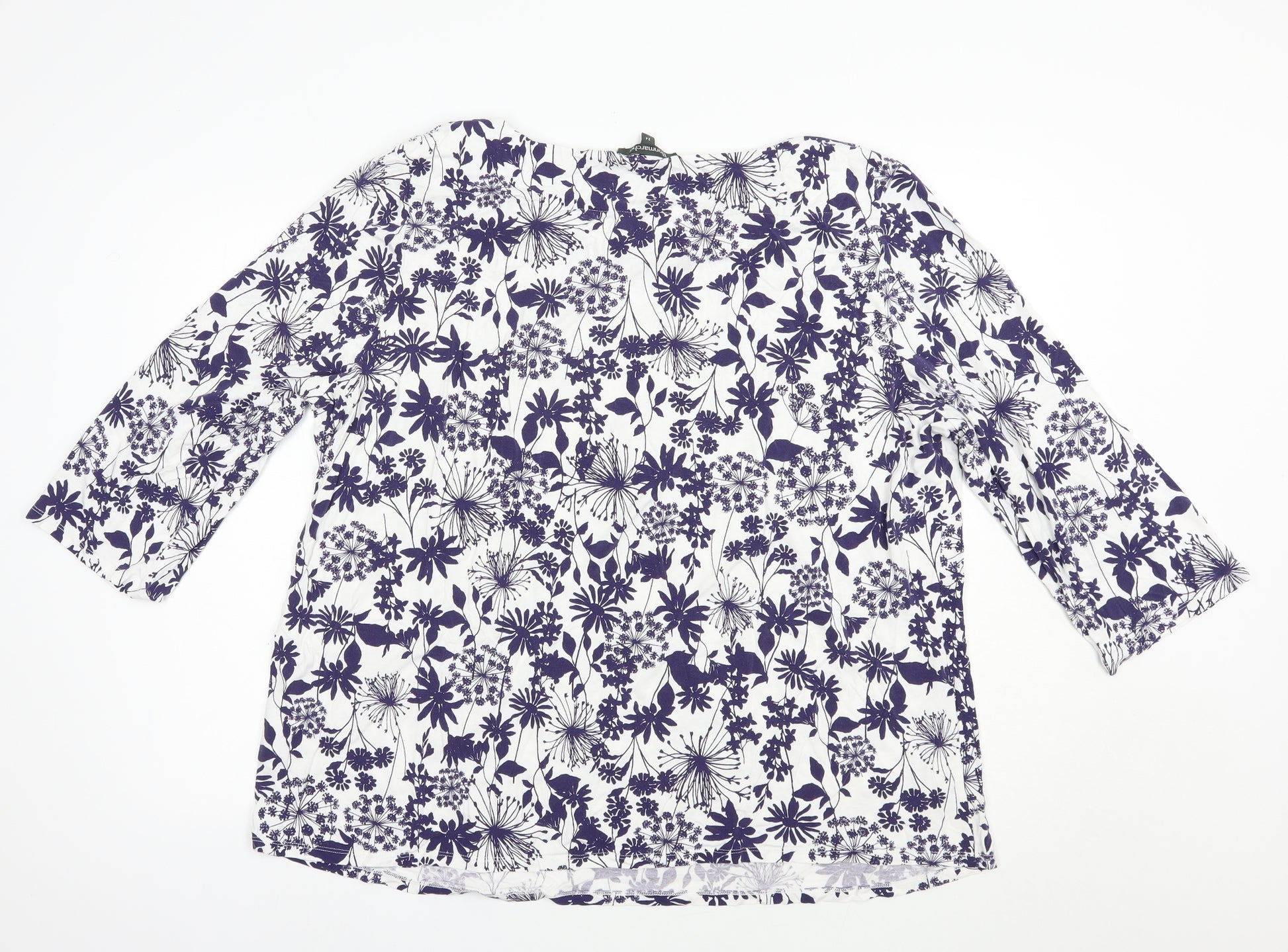 Womens White Floral Viscose Basic Blouse Size 24 Boat Neck