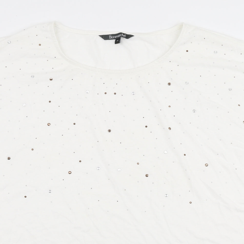 Womens White Polyester Jersey T-Shirt Size 24 Round Neck