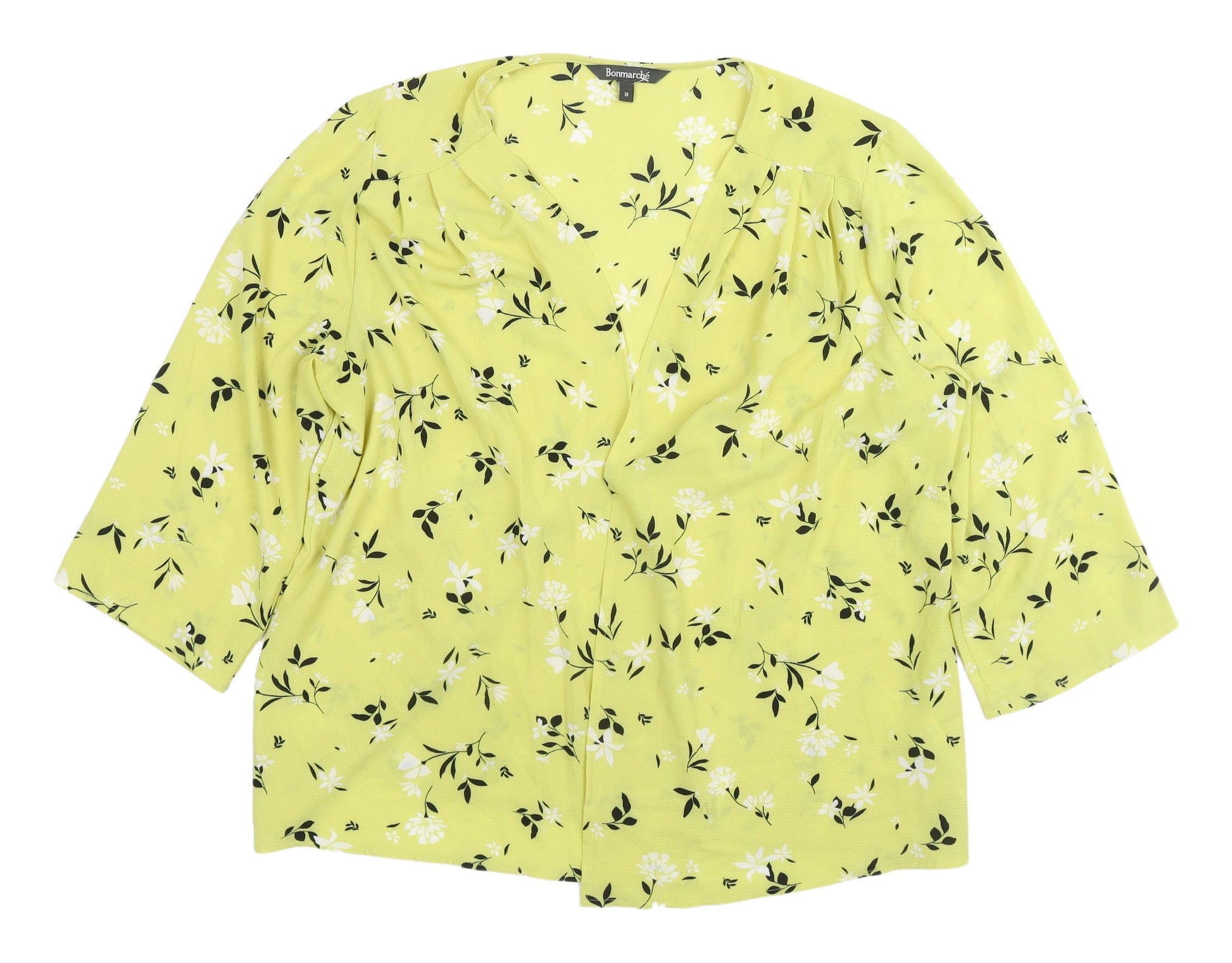 Women's Yellow Floral Blouse 3/4 Sleeve Size 18