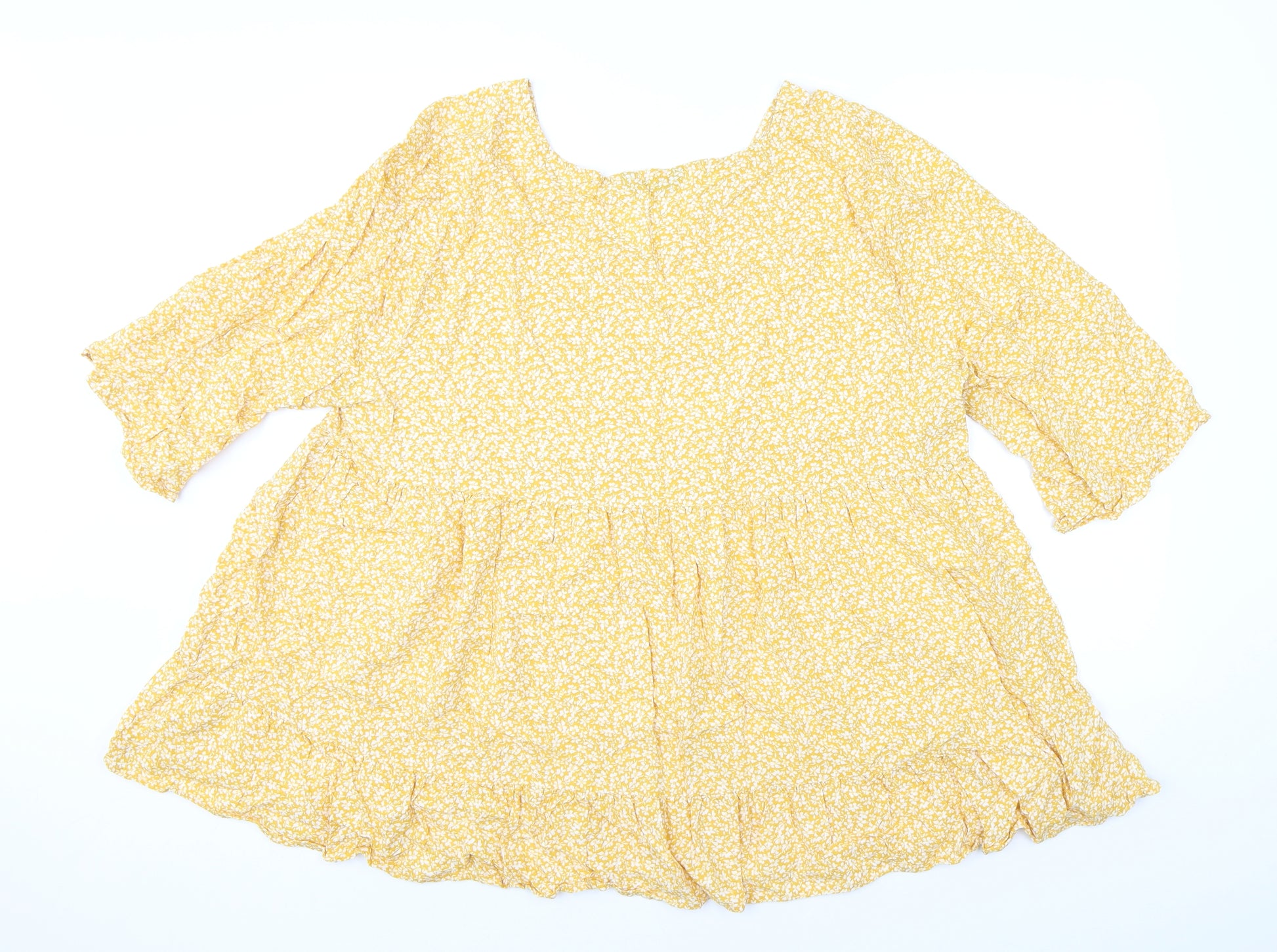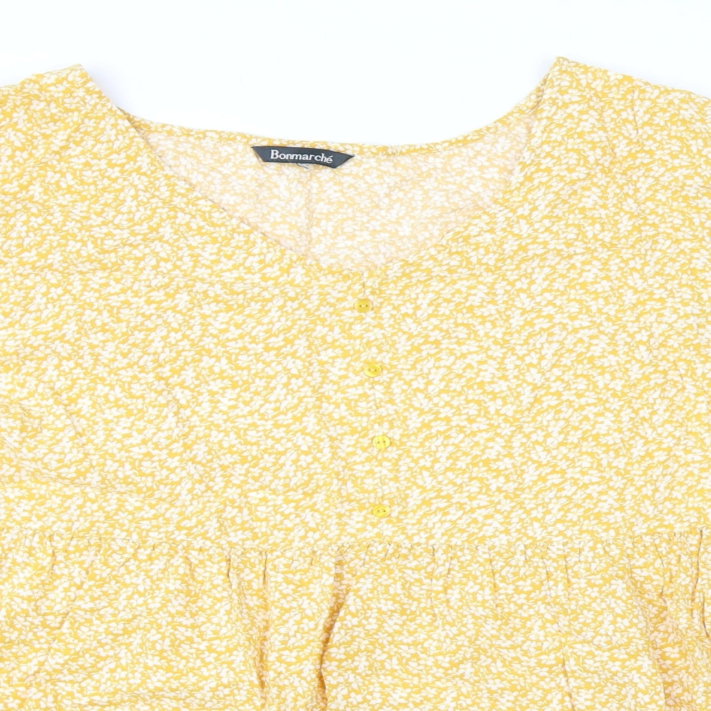 Womens Yellow Floral Viscose Basic Blouse Size 22 V-Neck