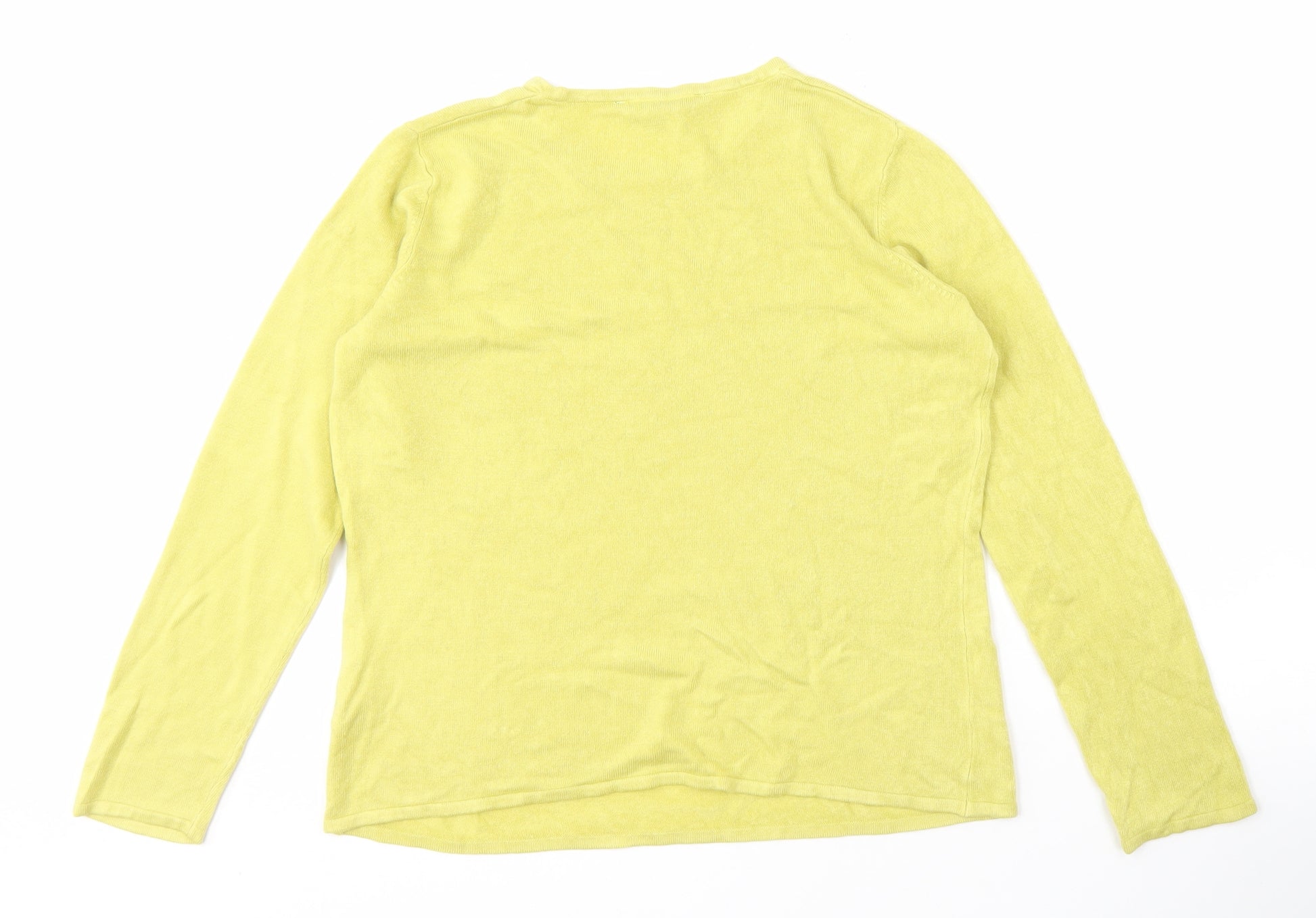 Upgrade your casual wardrobe with this vibrant yellow pullover jumper from Bonmarché. Perfectly designed for women, it features a timeless crew neck and long sleeves, offering both style and comfort for those cooler autumn and winter months. Crafted from 100% acrylic, this knit jumper promises a soft touch against your skin while providing durability and easy care—a practical choice for everyday wear. Ideal for casual occasions, this jumper effortlessly combines simplicity and elegance, presenting a classic fit that suits all body types. Embrace the cheerful colour to brighten your outfit and add a pop of sunshine to overcast days. Whether you're relaxing at home or stepping out for a casual day out, this pullover is versatile and can be easily paired with your favourite jeans or skirts. Bonmarché ensures quality and style in every piece, making this jumper a fantastic addition to any wardrobe. Despite being pre-owned, it remains in excellent condition with no visible signs of wear. Enjoy the mix of comfort, style, and affordability with this beautiful yellow jumper, priced at an attractive £12.75—a perfect choice for fashion-savvy bargain hunters.