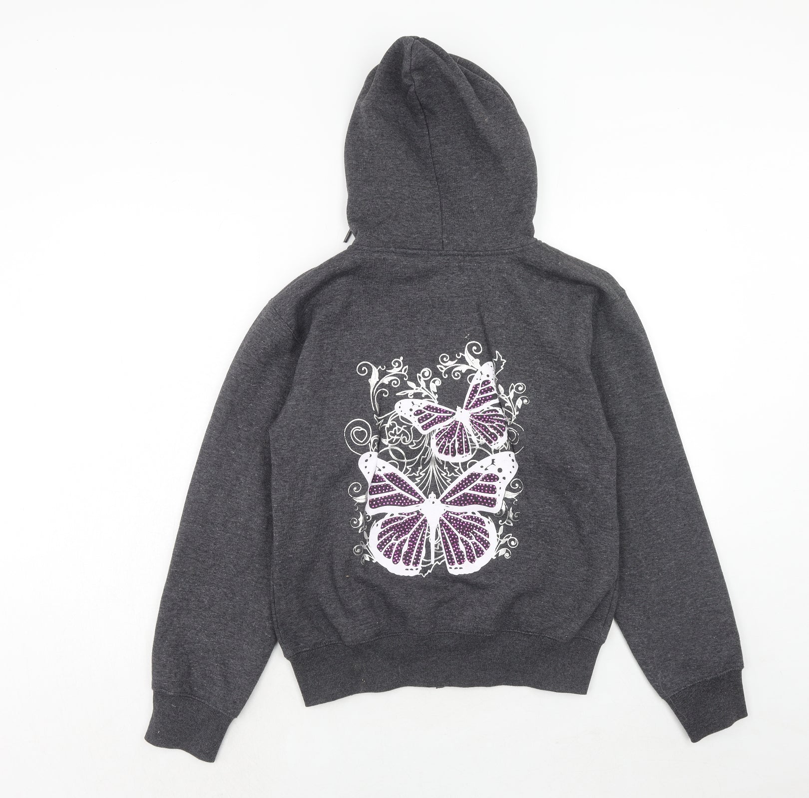 Womens Grey Polyester Full Zip Hoodie Size L Zip