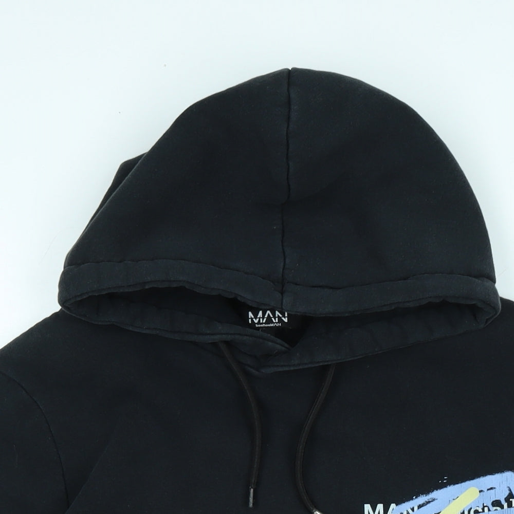 Mens Black Polyester Pullover Hoodie Size XS