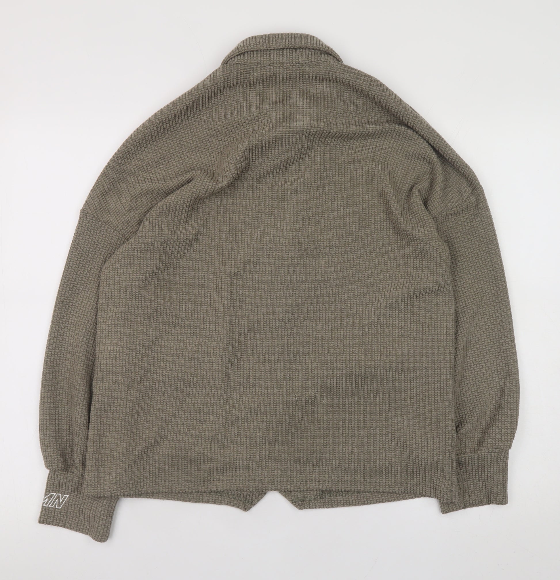Refresh your wardrobe with this stylish men's beige knit zip jacket from boohoo. Crafted from a comfortable blend of 98% polyester and 2% elastane, the jacket offers both durability and flexibility, featuring soft knit construction that makes it perfect for layering in cooler seasons such as autumn and spring. Designed in a classic casual style, it features a full front zip fastening, two front flap pockets, and a relaxed fit that ensures easy movement and comfort. The pointed collar adds a neat, modern touch that keeps the look sharp yet versatile. The beige tone is timeless and pairs effortlessly with most outfits, from jeans to chinos. This boohoo men's jacket brings together practicality and understated style, ideal for everyday wear, travel, or casual social occasions. Machine washable for ease of care and with a mid-length cut that provides just the right coverage, it’s a great choice for transitional weather. In excellent pre-owned condition with light general wear and no visible flaws, this jacket represents great value and smart addition to any modern man’s wardrobe. Perfect for creating a laid-back vibe while maintaining a polished aesthetic, this boohoo zip-up knit jacket makes for a functional and fashionable choice that can seamlessly take you from weekday outings to weekend adventures.