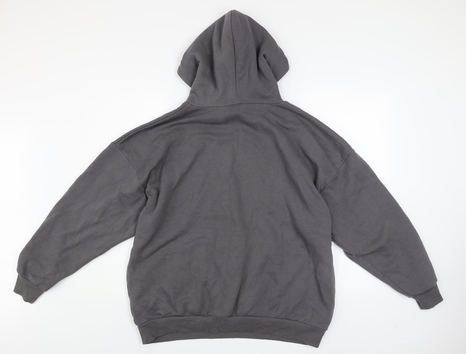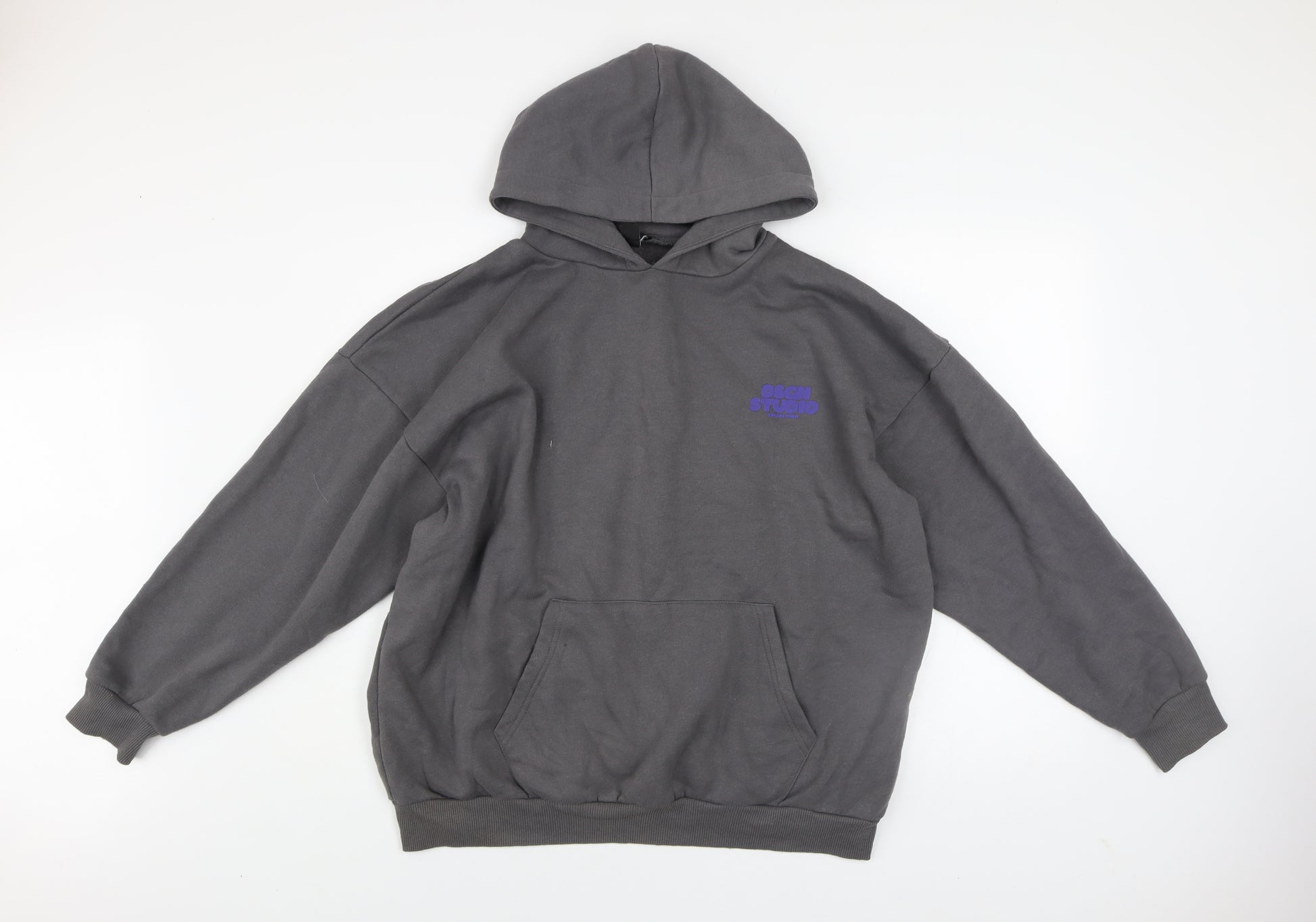 This boohoo Men’s Grey Pullover Hoodie is the perfect blend of comfort and street-ready style. Made from a soft fleece fabric composed of 70% cotton and 30% polyester, it offers breathable warmth ideal for cooler days. The hoodie comes in a classic grey colourway, featuring a relaxed fit and a subtle 'Logo' graphic print in purple on the chest for a distinctive yet understated look. With a hooded neckline and practical kangaroo front pocket, this hoodie strikes the right balance between everyday functionality and casual flair. Designed for all-season wear, this medium-weight hoodie is easy to pair with jeans, joggers, or shorts for versatile styling. The durable fleece material ensures lasting comfort, while the ribbed cuffs and hem add a secure fit that keeps its shape. Machine washable for easy care, it’s an effortless wardrobe essential for men who prefer functional, stylish, and comfortable apparel. Whether you’re heading to the gym, lounging at home, or stepping out for a casual meetup, this hoodie fits seamlessly into any relaxed outfit. Its understated yet modern aesthetic with a soft, brushed interior offers the ideal balance between warmth and breathability. Crafted in Turkey to boohoo’s contemporary menswear standards, it represents accessible style without compromising quality. This garment is in excellent pre-owned condition with minimal signs of wear, maintaining a clean and well-kept look. Perfect for men who appreciate a practical, stylish, and affordable wardrobe staple, this grey hoodie suits casual and transitional weather use alike. Complete your off-duty style effortlessly with this versatile boohoo pullover, combining comfort, fit, and timeless simplicity in one easy-to-wear piece.