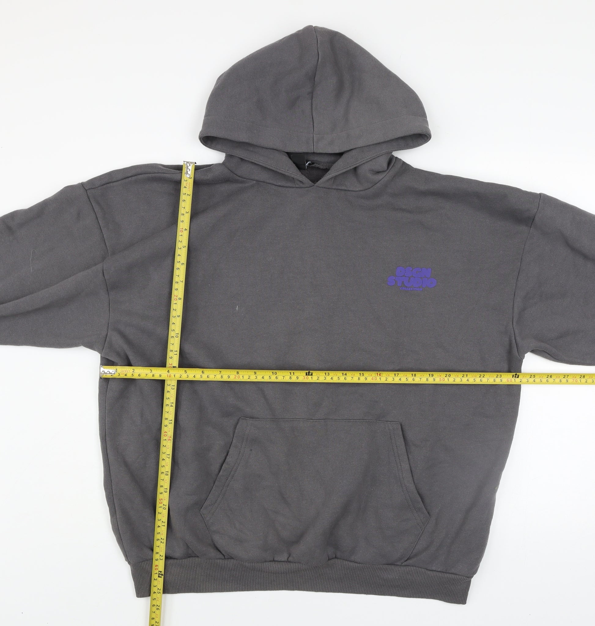 boohoo Men’s Grey Pullover Hoodie M Fleece Logo Graphic Sweatshirt