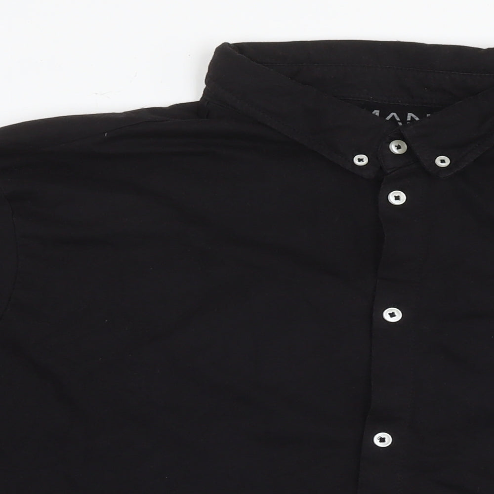 Mens Black Polyester Button-Up Size 3XL Collared Button