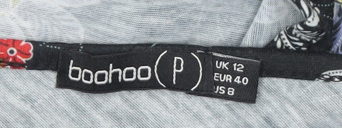 Add a playful yet sophisticated touch to your summer wardrobe with this beautiful Boohoo women’s black floral halter bodysuit in UK size 12. Crafted from a soft and stretchy polyester and elastane blend, this bodysuit offers both comfort and style for all-day wear. The vibrant floral print with delicate butterfly detailing pops against the black background, making it perfect for pairing with high-waisted jeans, skirts, or shorts for a versatile look that transitions seamlessly from day to night. The halter neckline adds a flattering and feminine edge, while the sleek bodysuit fit ensures a smooth silhouette under clothing. Ideal for casual outings, summer festivals, or layering under blazers for an evening out, this piece is both stylish and practical. The stretch jersey fabric hugs the body comfortably, allowing easy movement while maintaining a chic shape. Machine washable for simple care, it’s a wardrobe staple that works effortlessly in relaxed and dressier looks alike. Designed in Boohoo’s signature trend-led style, this bodysuit embodies contemporary fashion flair without compromising comfort. In excellent pre-loved condition, it shows only minimal signs of wear and remains in great overall shape, ready for many more wears. Perfect for the fashion-conscious woman who loves easy-to-style, statement-making wardrobe staples, this bodysuit will elevate any outfit with its bold, eye-catching appeal.